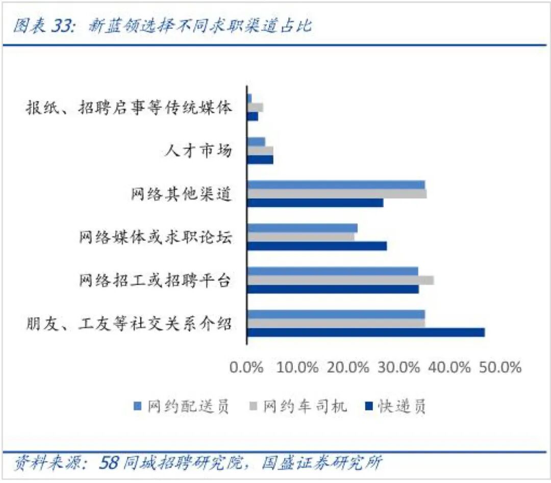 据中智咨询的《2021年技能蓝领人才吸引和激励报告》,41.8%的企业仍使用劳务派遣形式招揽新人。而新蓝领求职中,最常用的渠道也还是中介。