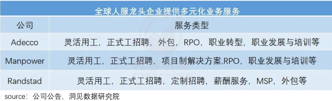 而除了灵活用工,这些全球领先的劳务龙头机构,还会为客户提供一站式服务——招聘前、招聘中、招聘后全流程参与服务。这意味着,整体解决方案提供商模式也会是行业发展趋势。