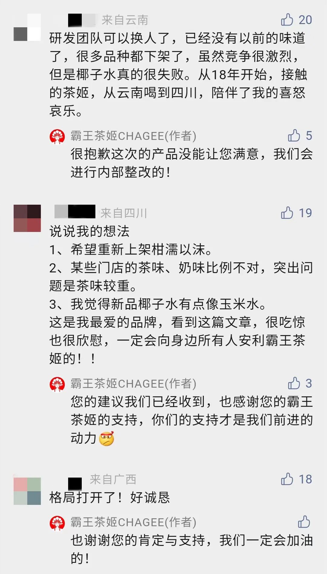对于消费者反馈椰子水不好喝的情况,霸王茶姬本着产品至上的原则,做出了两个应对措施。