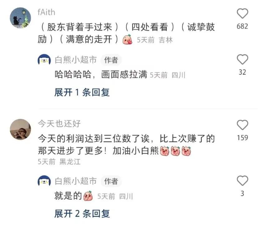 在这个故事里,一家开在五线的“白熊小超市”,通过在小红书上记录每日盈亏、分享开店心得,圈到一批“云股东”在评论区给小店提建议、做“云改造”。