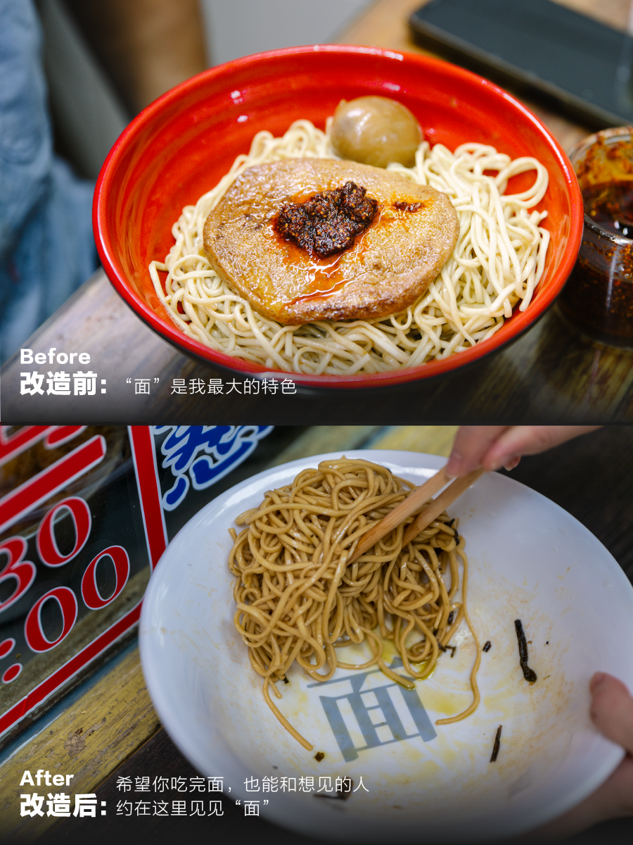 一碗面吃到底,“面”字赫然显露,味蕾和记忆点也就潜移默化地烙在食客心中。