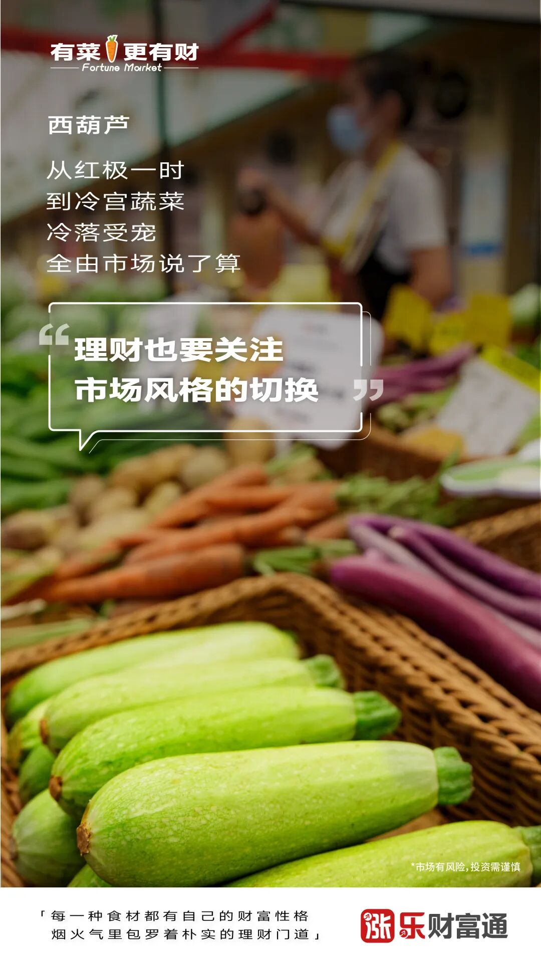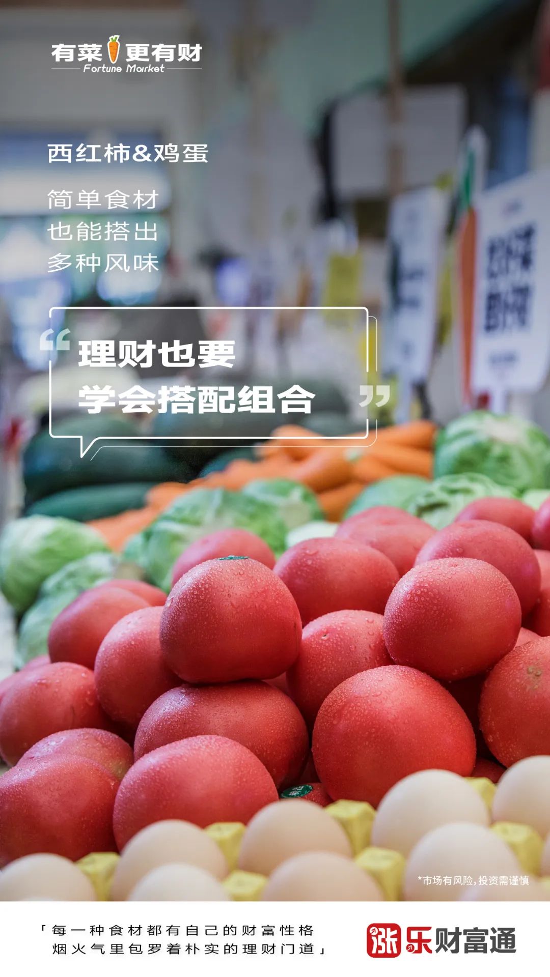 成功的跨界,往往看上去都是极大的反差感,但细想又存在紧密的连接点。当买菜和理财这样看上去有些风马牛不相及的事进行碰撞,天然就能撩拨起大家的好奇心。民以食为天,普通人的生活离不开蔬菜瓜果,鸡鸭鱼肉,其实理财也离大家的生活不远。涨乐财富通本次的“有菜更有财”财富市集,通过每一个看上去日常可见的瓜果蔬菜,将相通的理财观念巧妙植入其中,实在是妙!笔者最喜欢的就是海报上那句“每一种食材都有自己的财富性格,烟火气里包罗着朴实的理财门道”。