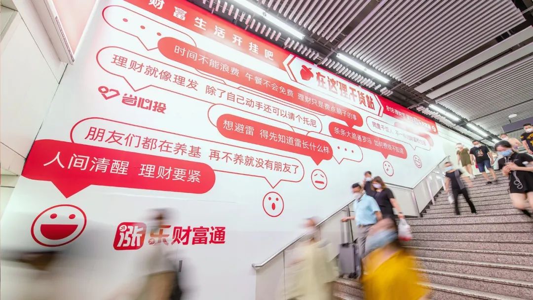 其实很多金融企业都在尝试去做,但真正的挑战在于如何将专业的内容通过用户感兴趣的方式去进行有效的沟通。近期,华泰证券涨乐财富通推出以“818理财节就在涨乐财富通”为主题的一波创意营销为大家呈现不一样的投资理财互动新体验。涨乐财富通邀请11家基金公司与5家上市公司等生态伙伴跨界宣推,通过财富市集、地铁站等用户日常接触的高频场景,创新性地传播理财投教理念,在收获较多参与和良好反向的同时,也强化了涨乐财富通年轻、创新、活力的品牌形象。