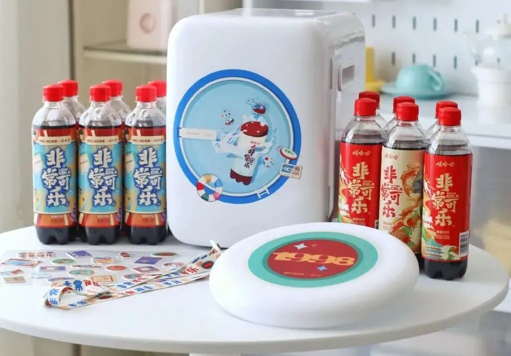 而在近年来,非常可乐在设计上也不断尝试新的风格,像国潮风、敦煌联名款以及复古趣味的包装。