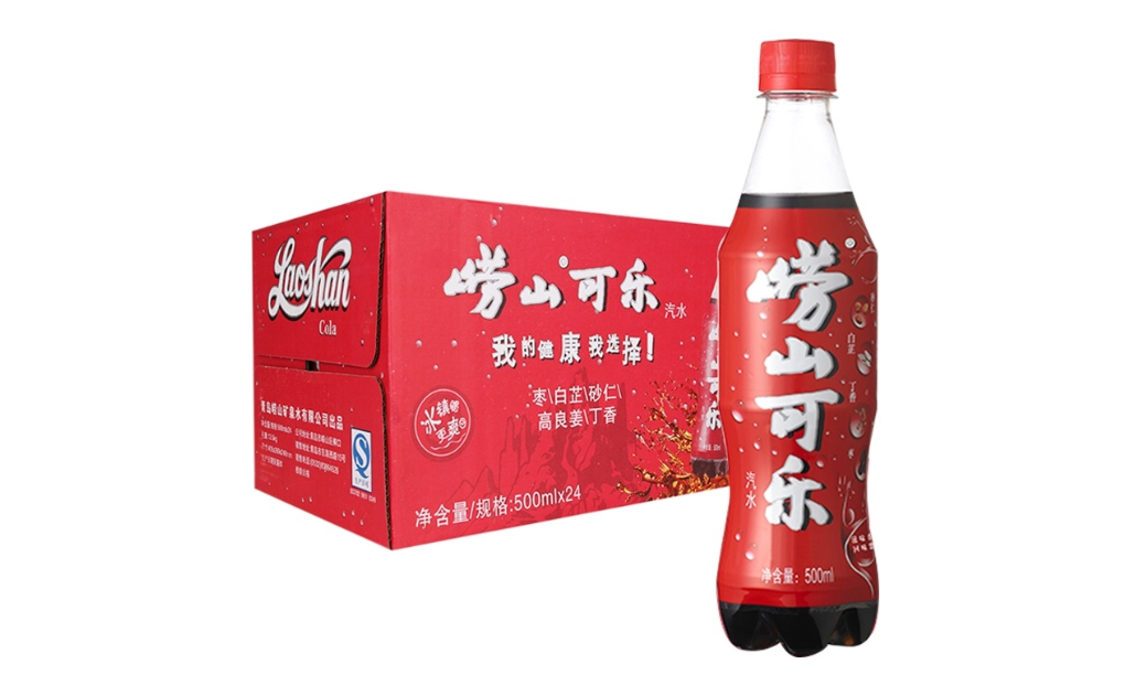 还有号称为“中国第一种碳酸饮料”的崂山可乐,据称有着中药口感,口味十分独特。 瓶子造型有点形似可口可乐,整体也是黑白红的配色呈现。