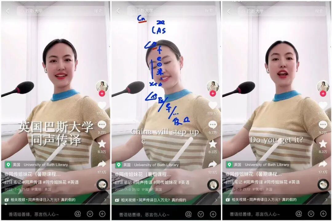 而上文提到的@同传姐妹花,也选择了这样的方式。博主毕业于同传专业中的世界名校英国巴斯大学,这一身份为她的个人能力做了很好的背书。