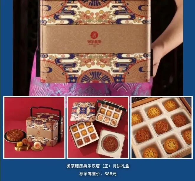 而在去年,御茶膳房典乐汉唐(正)月饼礼盒的标示零售价为588元。