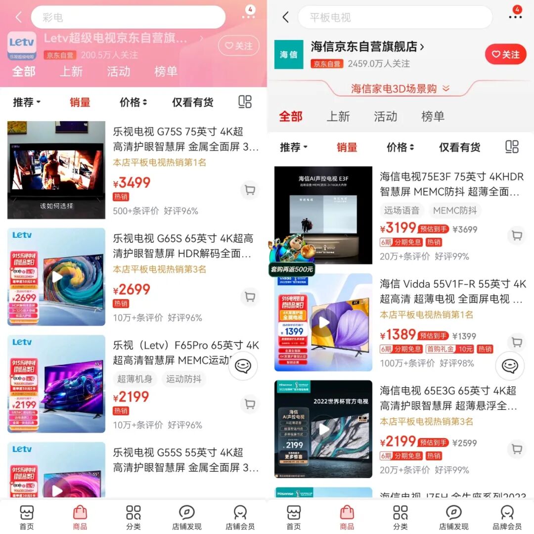 相比之下,乐视的硬件业务则不温不火,在第三方电商平台上,乐视销量最高的电视评价只有500条,其余几款电视的评价虽然有10万+条,但相比小米、海信等品牌电视动辄100万+条的评价并不算特别多。而乐视手机显示的评价只有1000+条,相比于其他手机品牌厂商而言,这个数据连零头也不算。