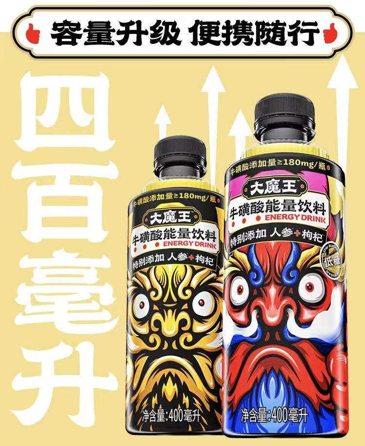 以及推出的“大魔王”牛磺酸能量饮料,对标东鹏特饮等功能饮品。