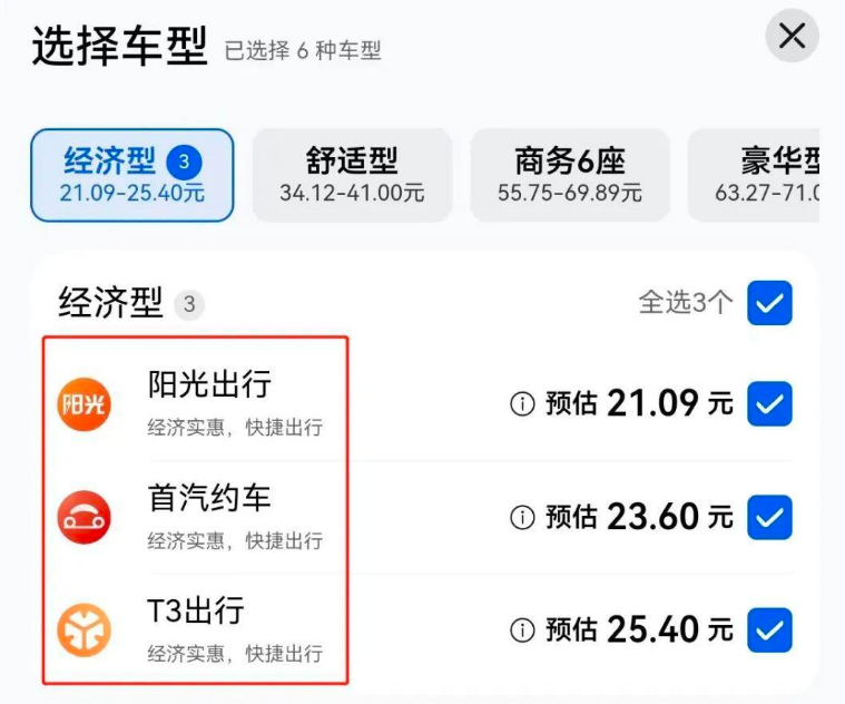 对比而言,国内最大的聚合打车平台“高德打车”显然更适合成为Petal出行学习的对象。