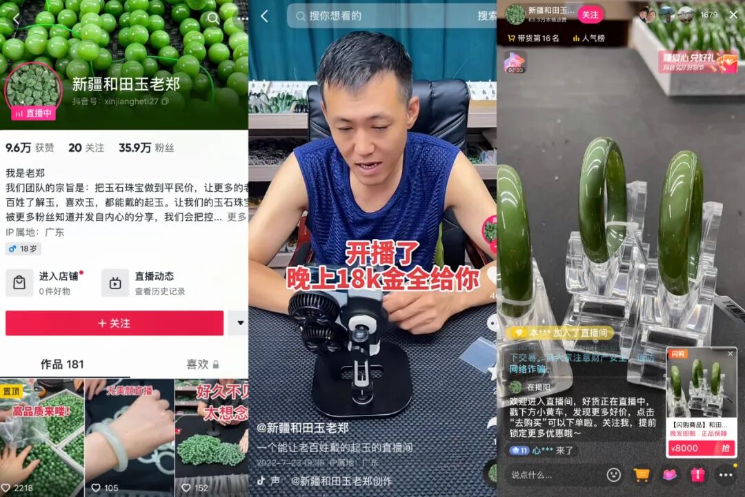 @新疆和田玉老郑 是今年抖音电商珠宝文玩赛道的黑马主播,迄今为止,其抖音粉丝量仅35.9万,却完成了单月销售额超2亿的成绩。他是如何做到的?
