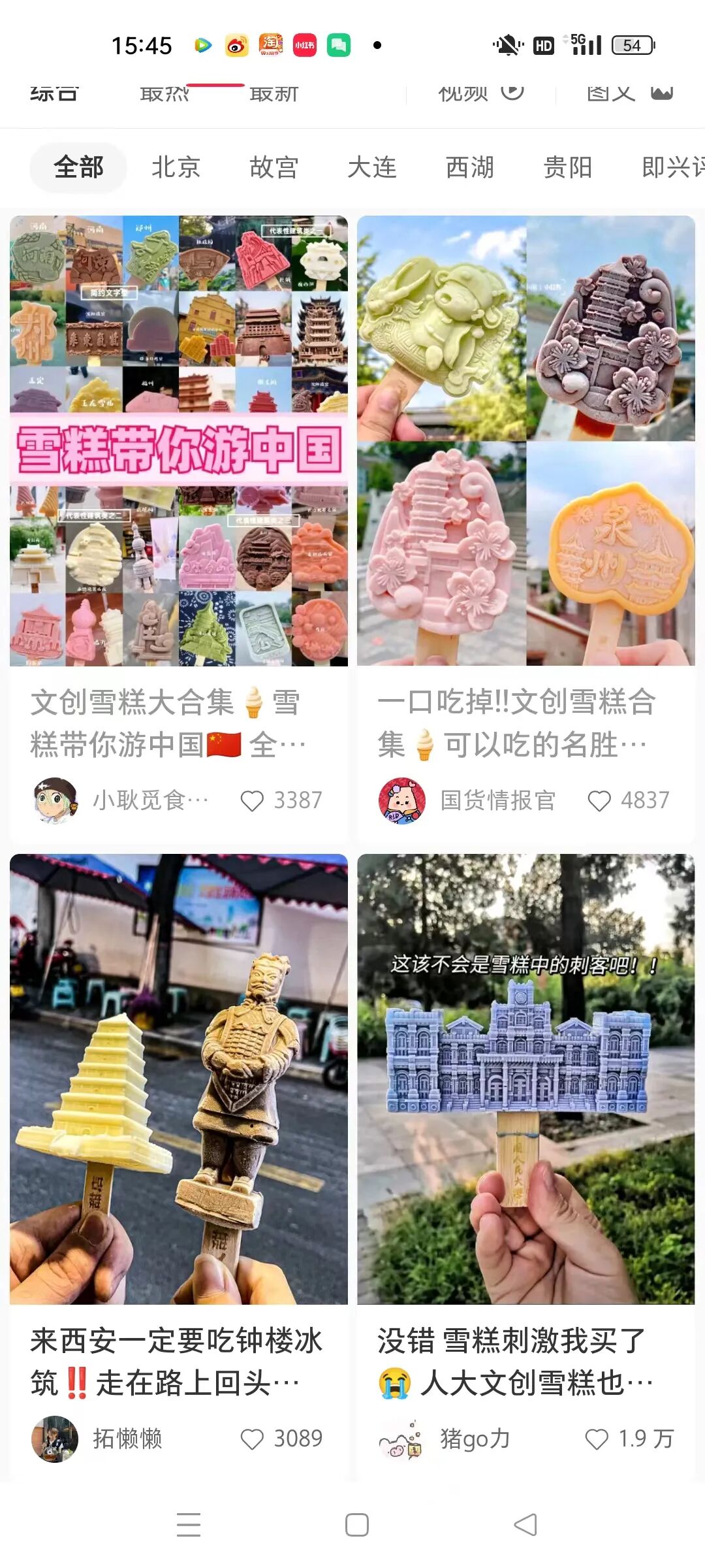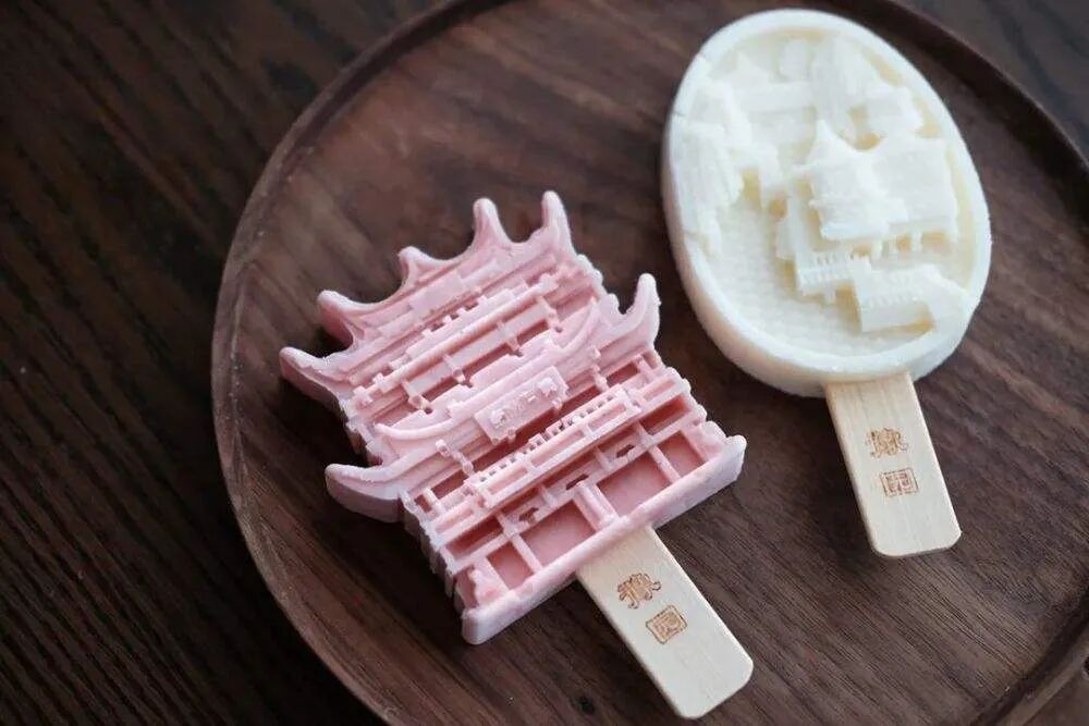 自从2017年的圆明园开了个头,全国各地的景区都流行卖雪糕了。在小红书搜索文创雪糕,显示笔记数量有一万+,其中一篇“雪糕带你游中国”的笔记位列榜首,花样繁多的文创雪糕看的人又想吃又想玩。圆明园应该算是文创雪糕的发起者,当年莲花和并蒂莲、兽首雪糕一出,艳惊四座,一下子开启了文创雪糕的全胜时代。之后故宫石狮子、颐和园十七孔桥和铜牛、景山的牡丹、玉渊潭的樱花、天坛的祈年殿、南昌的腾王阁、敦煌的莫高窟等等全都有了自己的雪糕翻版。全国形成了有景点必有雪糕的胜况,文创雪糕几乎成了景点的社交名片。不止是景点和城市,大学和企业也都开始拥有自己的文创雪糕。2021年清华大学出品了一系列校园主题雪糕,人民大学、武汉大学、南京农业大学、北京理工大学等等也都拥有了有自己的雪糕招生广告。白酒品牌刘伶醉推出了酒糟味的雪糕,不知道吃完能不能开车。