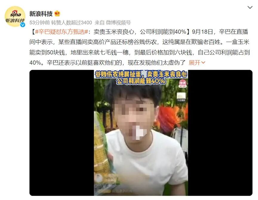 起因是在近日一场直播中,辛巴在带货时谈及某些直播间“卖高价产品还标榜谷贱伤农”,认为“是在欺骗老百姓”。
