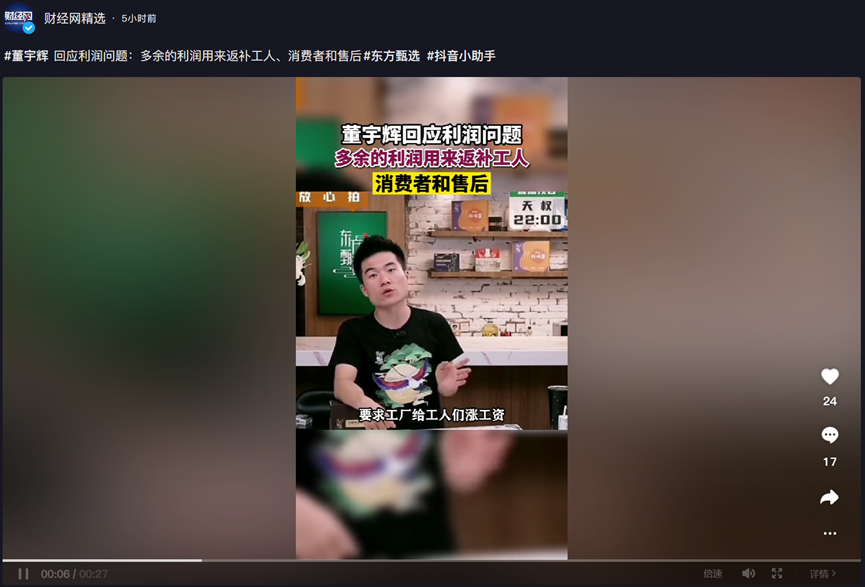 关于这一点,董宇辉也作出了回应。