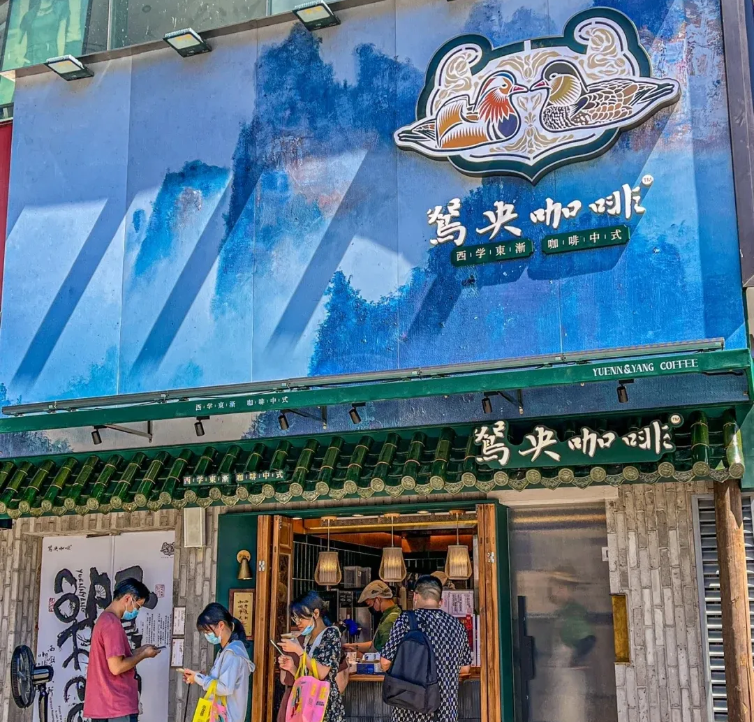茶颜悦色自创独立品牌鸳央咖啡定位“新中式咖啡与茶”,在品牌风格上也与茶饮也非常相似,无论是门店装修还是产品都有着新中式咖啡馆的氛围感。