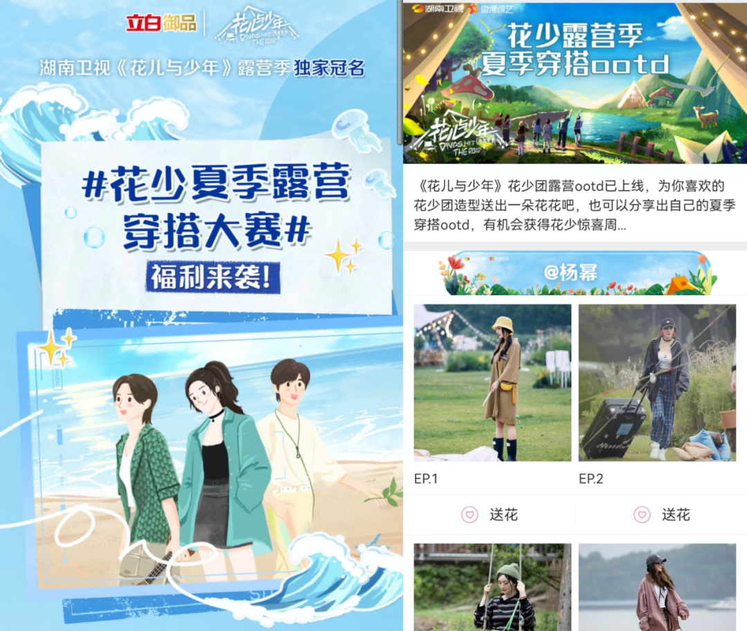 综艺相关话题持续发酵的同时,立白御品借势发起微博话题#花少夏季露营穿搭大赛#,联合数十名具备生活/时尚KOL高契合度实时贴合节目热点发布露营穿搭造型,并与用户的密切互动,将综艺热度巧妙转化为品牌热度。