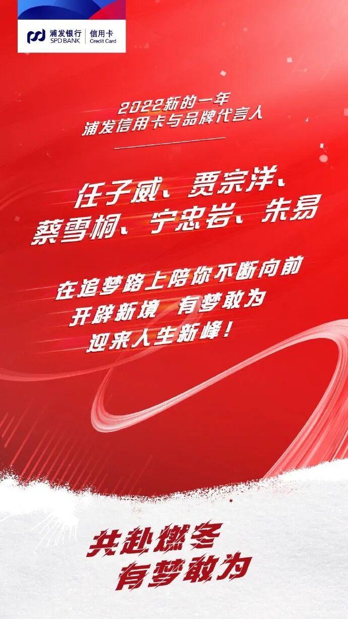 在社会观察家三浦展所著的《第四消费时代》中,曾阐述了成熟消费社会,即第四消费时代的趋势,在享受了充足的物质条件之后,人们开始反思消费的意义是什么呢?并开始重视精神体验和⼈际和谐,也乐于共享、重视环保、重新建立人与人之间的联系的意识。这种消费意义是浦发银行信用卡与用户沟通的一条主线。例如在品牌代言人选择上,浦发银行信用卡选择了任子威、贾宗洋、蔡雪桐、宁忠岩和朱易五位年轻优秀的运动员,传递“突破自我,有梦敢为”的价值理念。 大众对于运动员的认知大多是正面的,他们奋力拼搏、努力不懈的精神,能够加深正向价值观的印象,传递出的正能量、阳光、健康的理念。