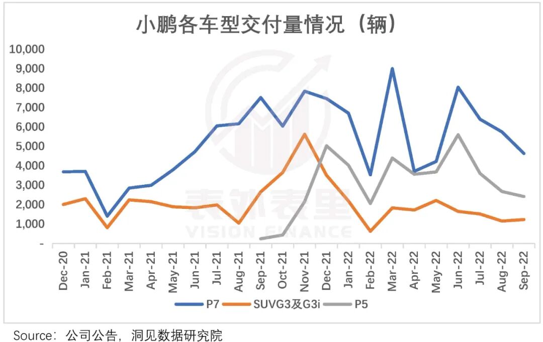 比如,小鹏今年肇庆二期工厂和广州工厂相继投产后,年产能达到30万辆,而2022Q3,小鹏的交付量不到3万辆,产能远超交付数。