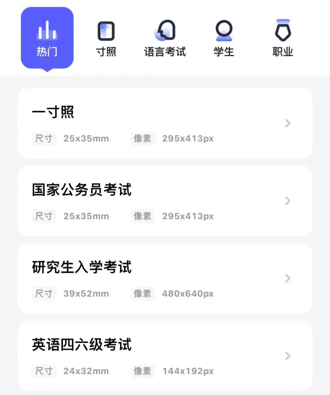 例如,夸克很早就注意到,许多用户在搜索照相馆之前,常常搜索不同证件照的尺寸、规格和着装要求等,而互联网上的信息往往并不准确。针对这一痛点,夸克增添了拍证件照功能,汇总了56种常见证件照的类型和规格,供用户选择拍摄。
