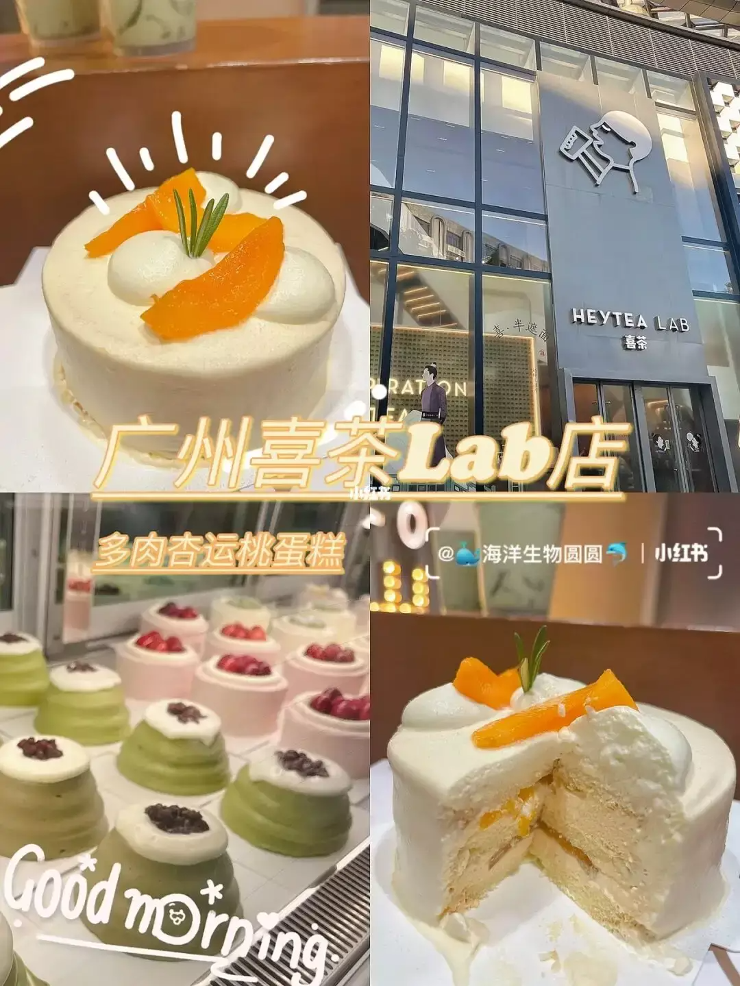 其实这已经不是喜茶第一次寻找新的增量市场了,在此之前,喜茶几乎尝试了所有行业内常用的开拓市场的方式。为了探索下沉市场,喜茶已经做过很多次努力,主要有过三次尝试(如今开放加盟,已经是第四次):第一次尝试是售卖烘焙产品。此前喜茶开设的LAB店,除了售卖主营的新式茶饮外,还增加蛋糕等烘焙产品的销售。按照聂云宸的逻辑,LAB店是横向的业务拓展,也就是往非茶饮的吃喝玩乐方向尝试;横向的尝试更多的是面向消费者提供茶饮以外更为丰富的产品选择。不仅能实现食用场景的丰富性,又能为喜茶吸引来烘焙圈的消费人群,从而达到突破茶饮圈层的目的。然而烘焙产品对于每一个新茶饮品牌来说,水花都不算明显。图片来源:小红书 海洋生物圆圆