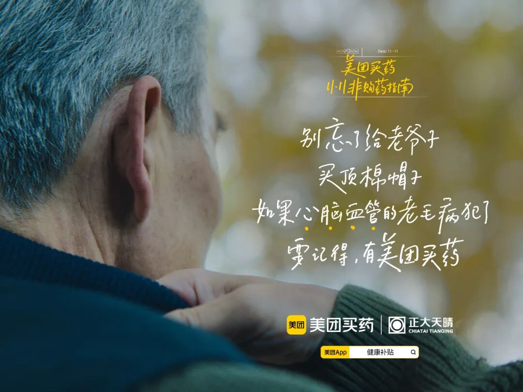 很显然,美团买药并不想要去编一个故事,而是把对生活真实细腻的观察,朴实的呈现出来,让见惯了广告套路的人们,心里感受到温柔一击。