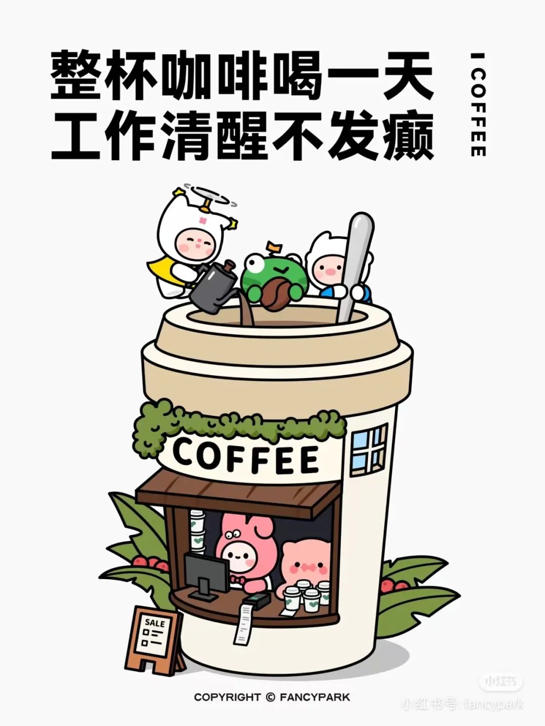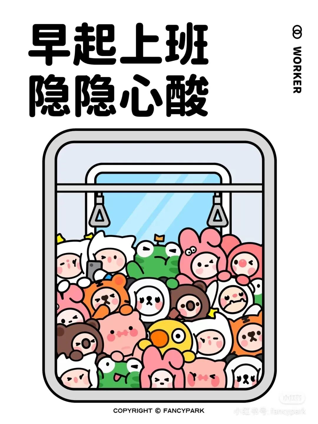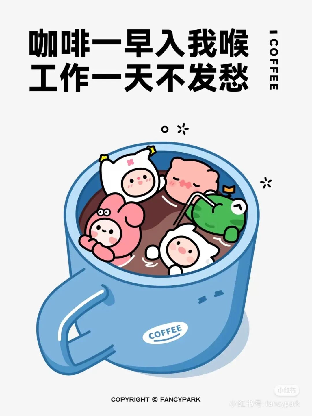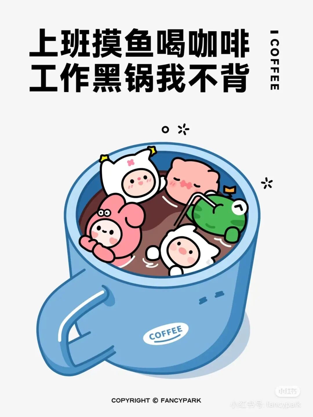 第三个来自@怪诞公园fancypark,他的IP是一群小动物,有青蛙、鱿鱼、螃蟹之类的,主角好像是那只鱿鱼,画风可爱,文案可亲。