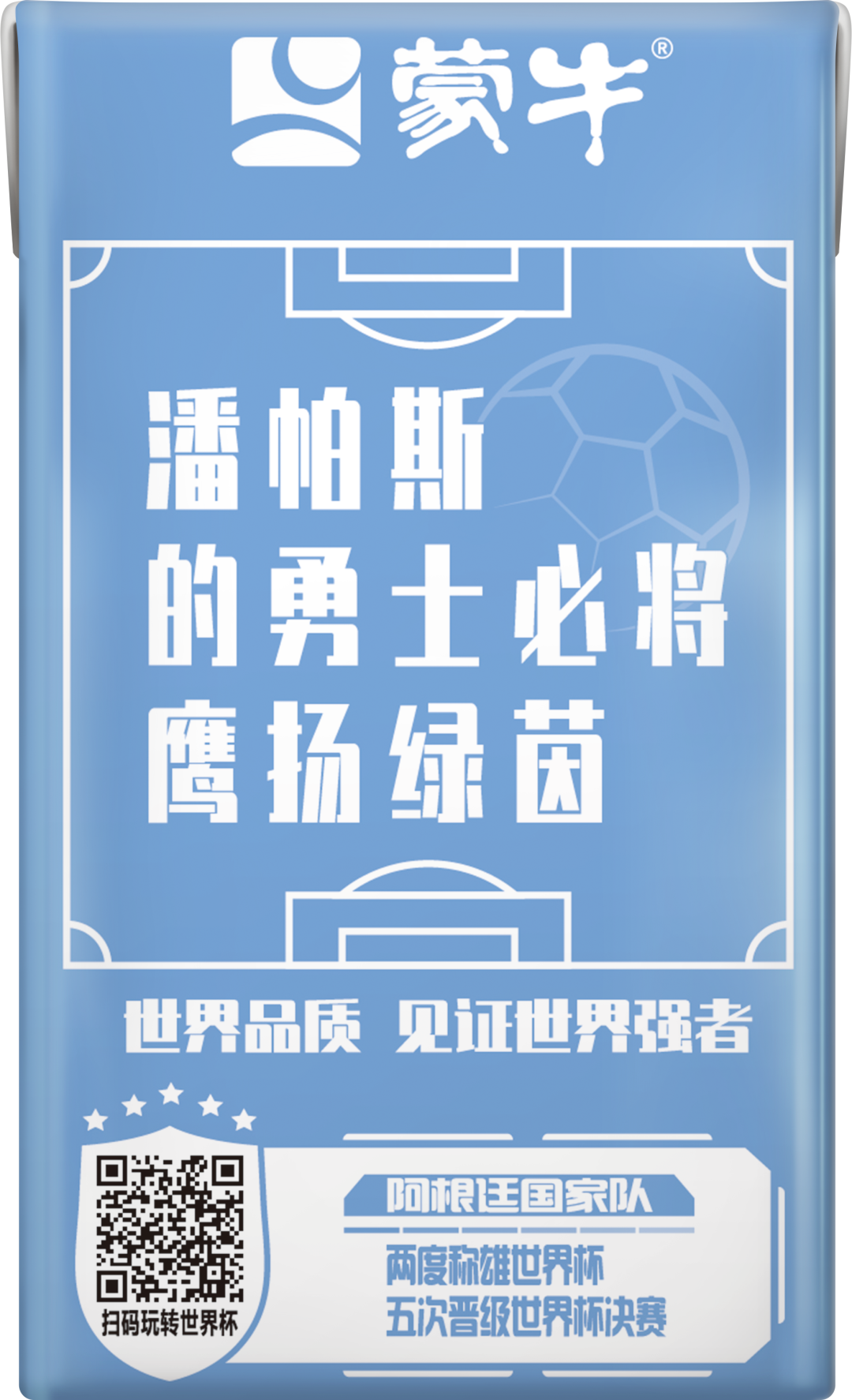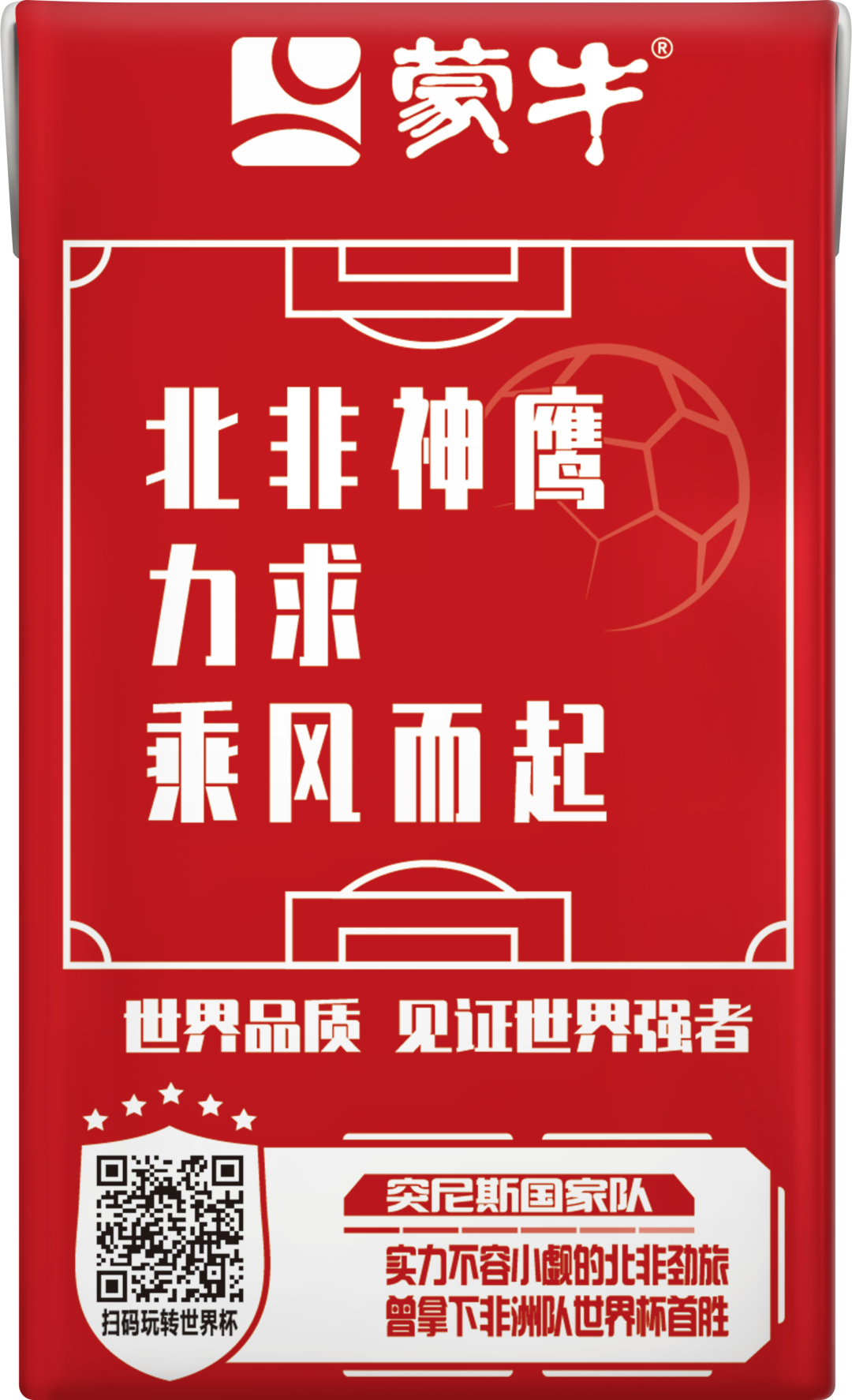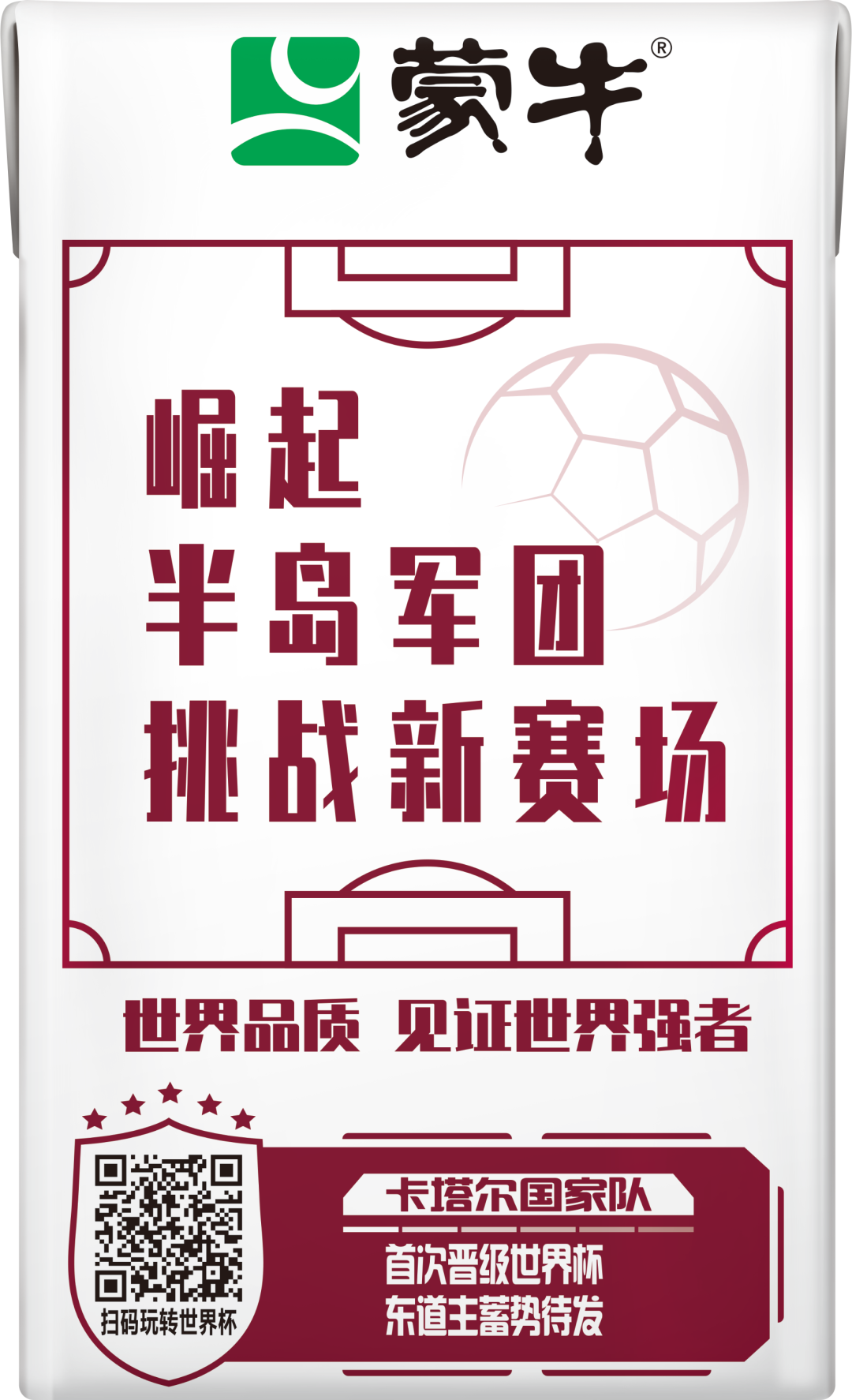 比如全棉时代联合中国妇女报、新世相推出原创记录系列「她改变的」,尝试改变着大众对女性科研工作者的刻板印象;天猫发起#加油白衬衫#的话题,与应届生近距离对话,鼓励每一个毕业生勇敢接受挑战。这样的群像式沟通,还包括历届世界杯的“队长”。2022 年卡塔尔世界杯开幕,不少品牌使出浑身解数开启热血营销模式。其中就不得不提这届世界杯的赞助商——蒙牛,多年来在世界杯话题上持续占位,最近又推出一支超燃的视频和世界杯定制包装。与其说蒙牛是借势世界杯营销,倒不如说是为队长们发声。01
