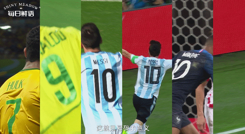 正如视频中所展示,每日鲜语首先找到了一个世界杯的标志性元素,即参赛强队中一些传奇球员的“号码数字”。这些号码不只是赛场上的球衣标识,更在伴随、见证球员们赛场拼搏的过程中,逐渐成为传奇球员的个人象征,成为传奇故事的承载符号,并由此具备了某种具体的体育精神内核: