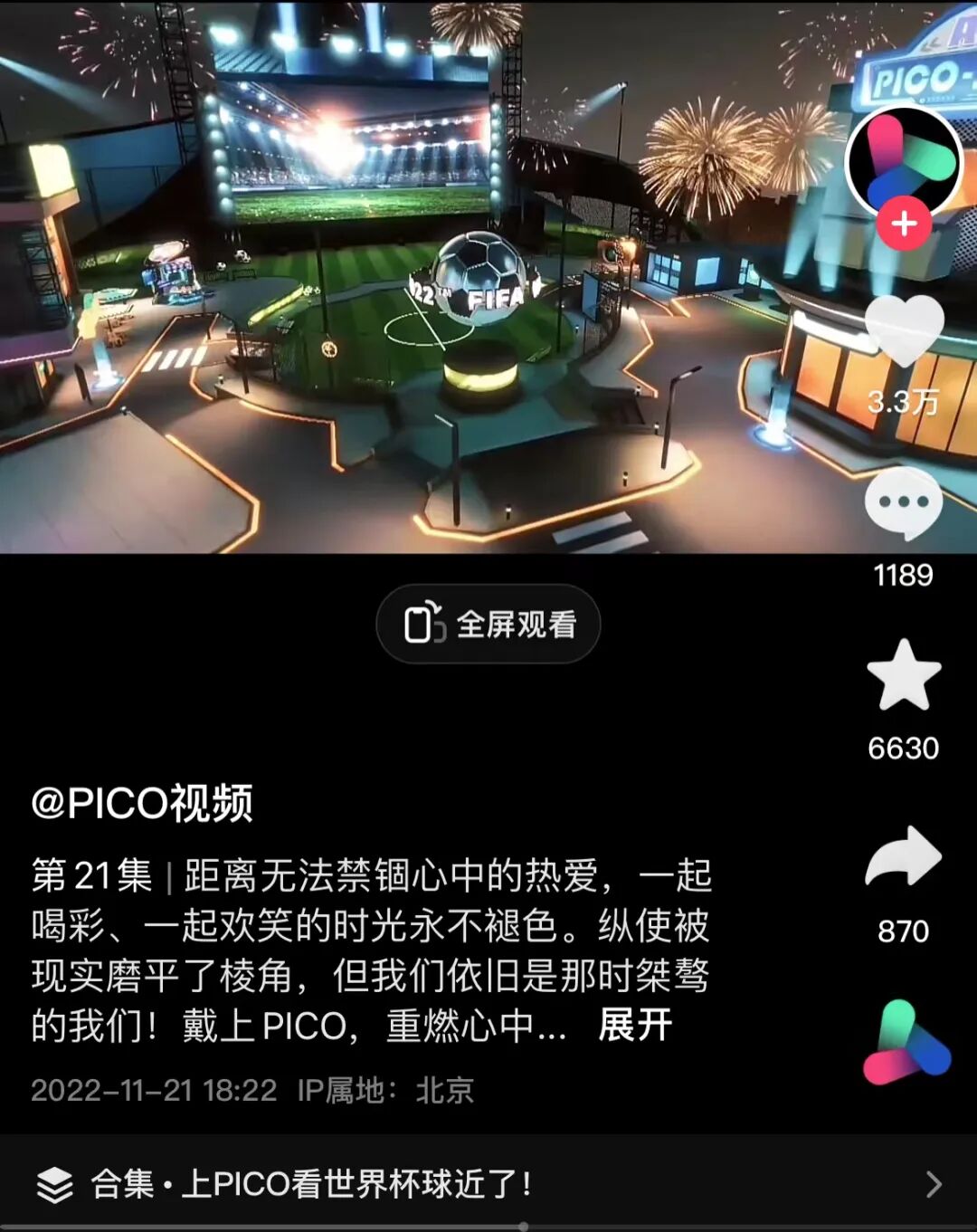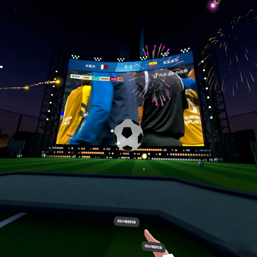 正在进行的卡塔尔世界杯,抖音VR直播,用户就可以在VR世界与全球各地球友一同看球,边看边聊。