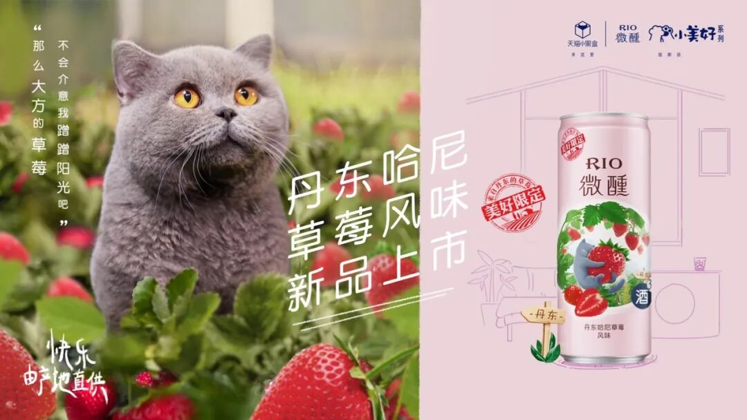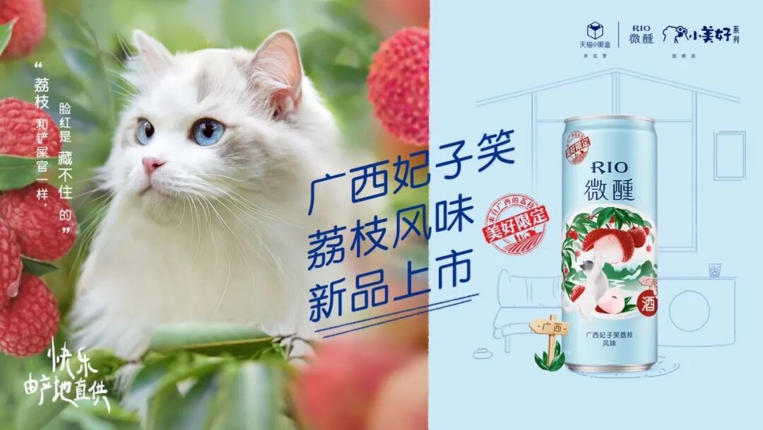 “如何更快速地抓住目标人群流量,并让新品独特认知占稳目标人群心智”,成为新品上市营销的首要目标。就在前不久,老罗注意到,低度预调鸡尾酒赛道的头号玩家RIO,携手天猫小黑盒上新了丹东哈尼草莓、广西妃子笑荔枝两款原产地风味的新品,不仅打爆出圈声量,更在消费者心智中塑造了不可取代的小美好。
