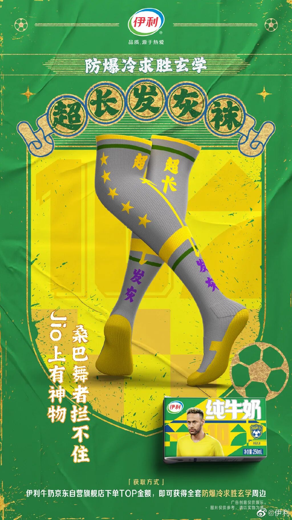 穿上超长发灰袜,发挥可以更超常!伊利借助趣味周边和球迷进行情感沟通。