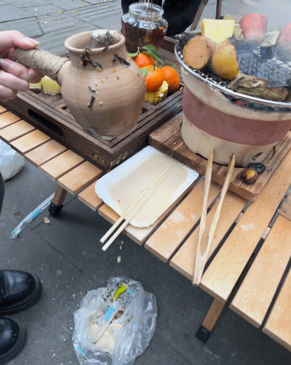 不过,看似简单的“围炉煮茶”实则是个技术活儿,功课没做到位,食物焦不焦都是其次,小心茶壶弹射起步。