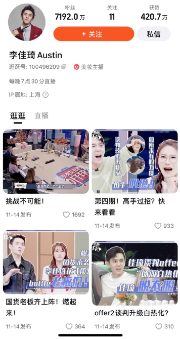 《中国企业家》曾经报道,2020年的时候,抖音给李佳琦和美ONE开出了“保底业绩规模150%于淘宝,抖音粉丝数量2倍于阿里平台”的offer。淘宝是用“李佳琦拥有固定专属直播间的一级入口,并保证一、二级入口的流量”,才保住了自己的直播头牌。