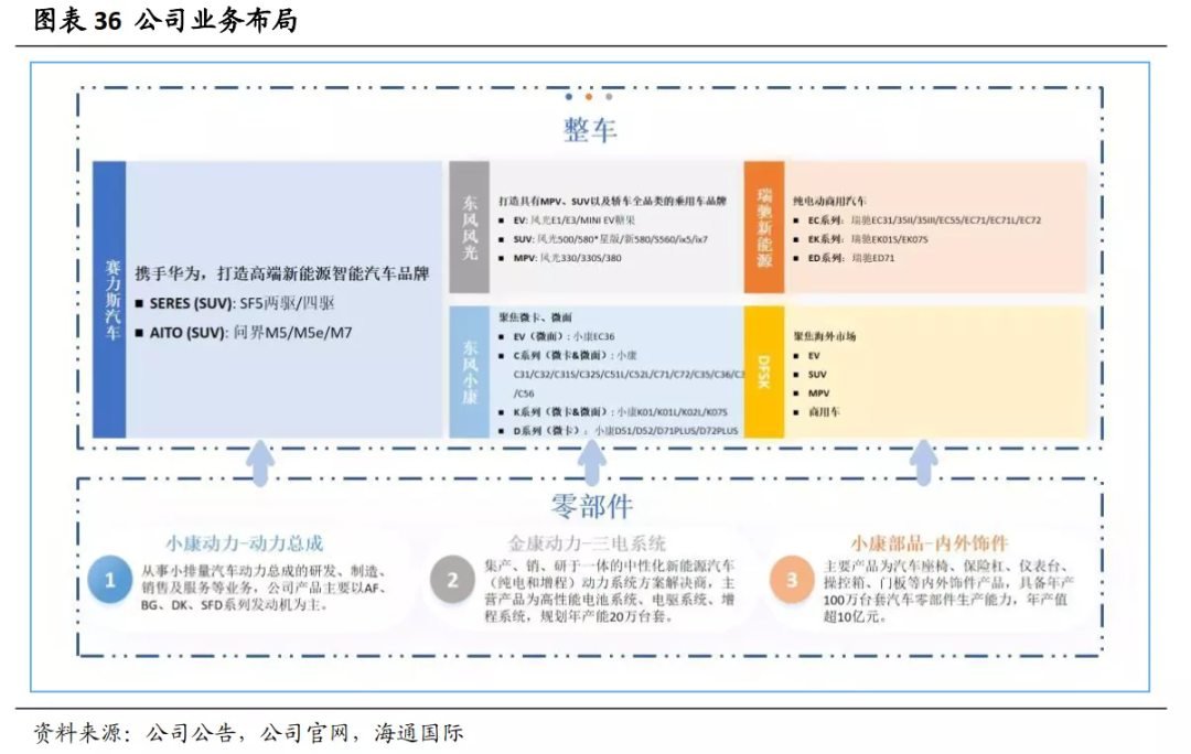 2021年推出赛力斯品牌之前,公司主力销售新能源车型为瑞驰EC系列纯电动商用车。此外还包括东风风光、东风小康等面向不同受众的多个品牌,均覆盖电动车整车。2018-2021年新能源车销量年均复合增速约为47.6%。