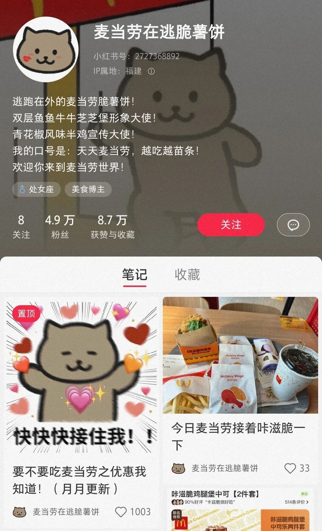 「麦当劳在逃薯饼」,是一位活跃在小红书的麦当劳资深粉丝&内部人士。