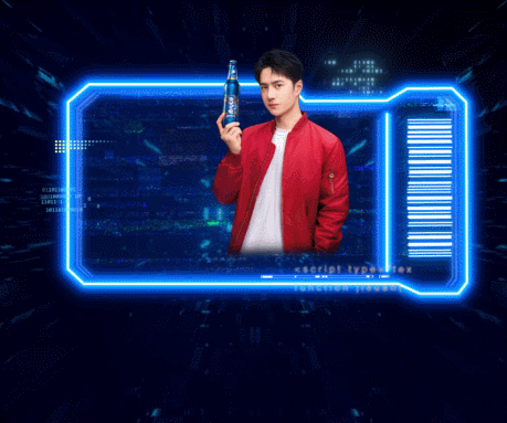 在舞美设计方面,相比常规化屏幕上的舞美,勇闯天涯superX对于云上Boom之夜的舞美设计颇具匠心。勇闯天涯superX整体以品牌色蓝色为主基调,以大型酒瓶、饮料自动贩卖机、王一博手握酒瓶的酷炫海报、霓虹灯效果的品牌名等作为场景点缀,整体看上去充满赛博朋克风格和未来感,给用户带来强烈的视觉冲击力和吸引力。