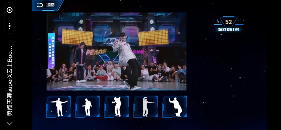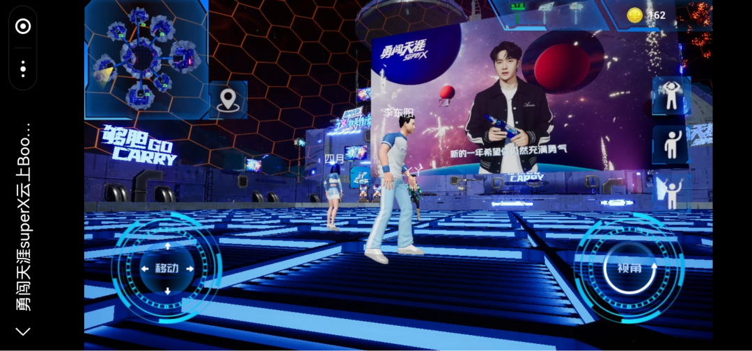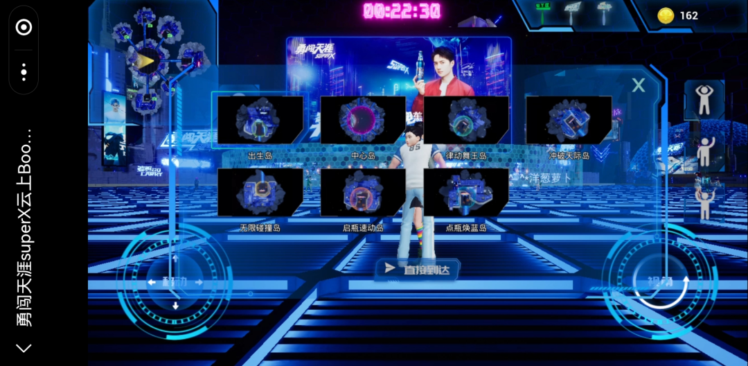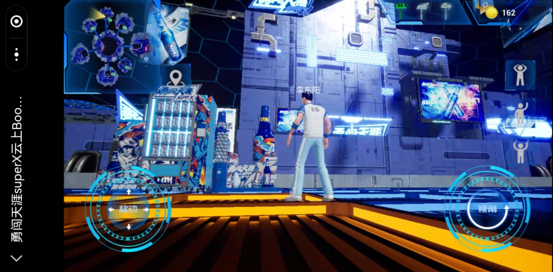 如果说出生岛让人一下子“入戏”,那么接下来几大娱乐游戏岛堪称炸场,为王一博舞台表演终极硬菜上场之前,提供娱乐化的开胃前菜。勇闯天涯superX以挑战金币为噱头,利用虚拟现实技术的交互性,设计律动舞王、点瓶焕蓝、启瓶速动、冲破天际、无限碰撞等一系列交互感极强的游戏,充分调动了用户的参与感。比如最有意思的律动舞王,邀请玩家欣赏一段王一博跳街舞的片段后,根据剪影小人的动作,快速排出正确的舞蹈先后顺序。