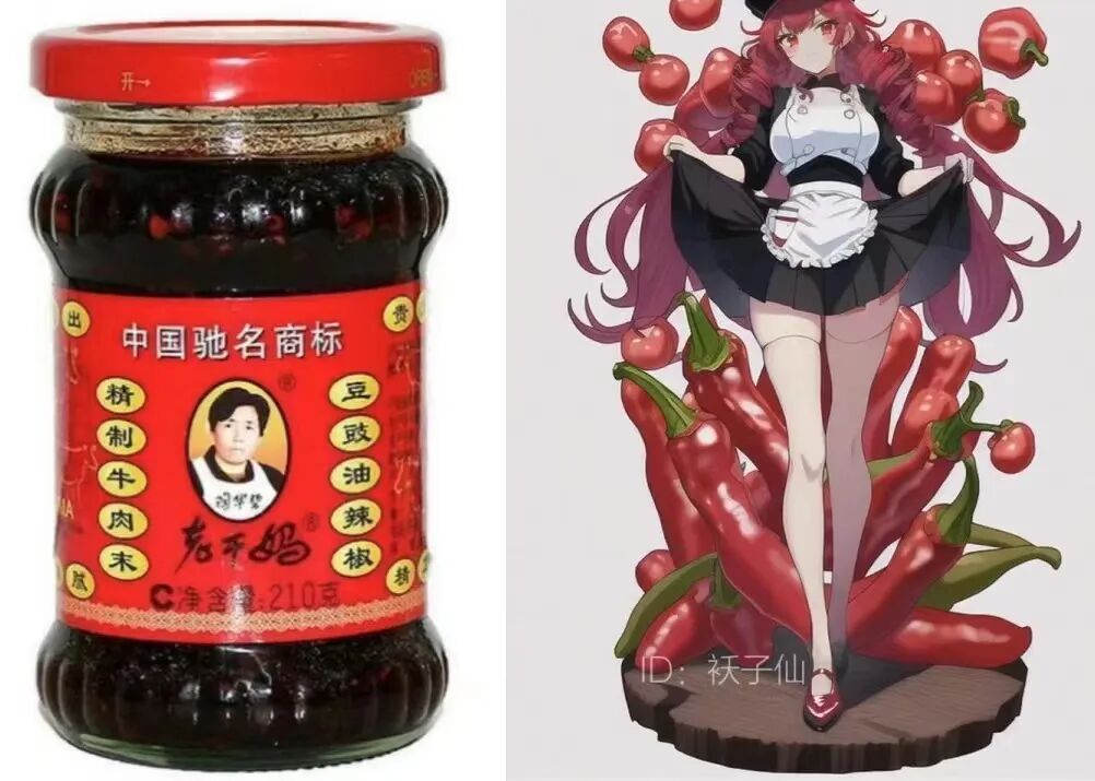而如此抓人眼球的创意,如今人们已经见怪不怪了。因为即使是肯德基的新奥尔良考鸡腿,也可以一秒变成二次元女神。同样神奇的还有我们常见的老干妈,印有陶华碧头像的土味包装,可以一秒变身穿着超短裙的超萌辣妹。人们似乎正在使用一种很新的绘画技术,而拥有如此魔法的,便是风靡2022年的AI绘画。01