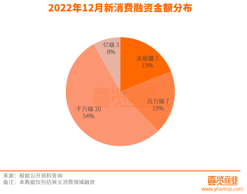 从融资轮次来看,12月份的新消费融资主要集中在天使轮,一共发生13起,占比为35.14%,新消费赛道的融资仍然处于早期。