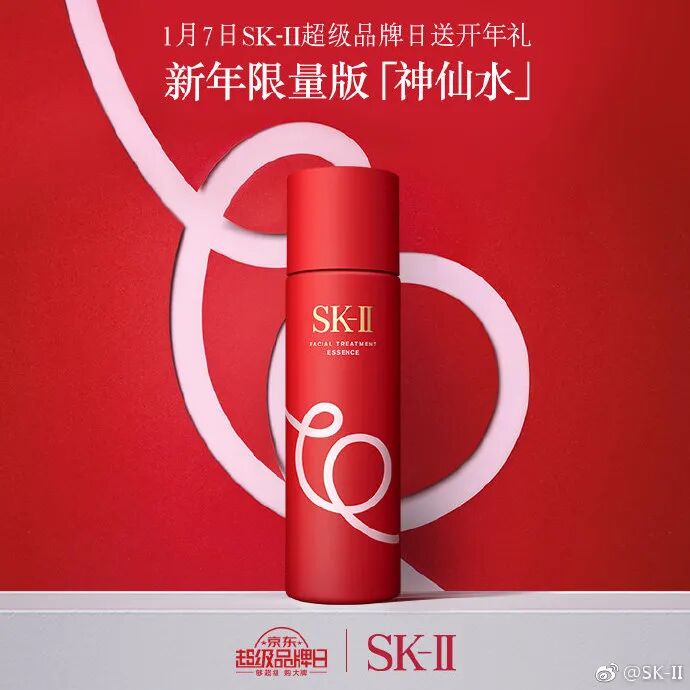 作为SK-II主打的王牌产品,SK-II一直围绕神仙水做瓶身营销。自2008年开始,SK-II每年都会推出限量版的神仙水,为消费者带来全新体验。前段时间,SK-II“神仙水”发布新包装,采用了高饱和的“红配绿”设计,亮瞎眼!还采用了盲盒玩法,隐藏款是黑色包装的SK-II“神仙水”。不过讲真,这个配色,多少有点接受无能。