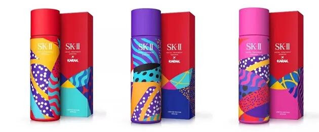 2018年,与新锐澳洲艺术家Karan Singh携手合作,推出「SK-II 2018青春露KARAN限量版」,以波普风为设计元素,配色鲜艳而大胆。图片来源SK-II 微博