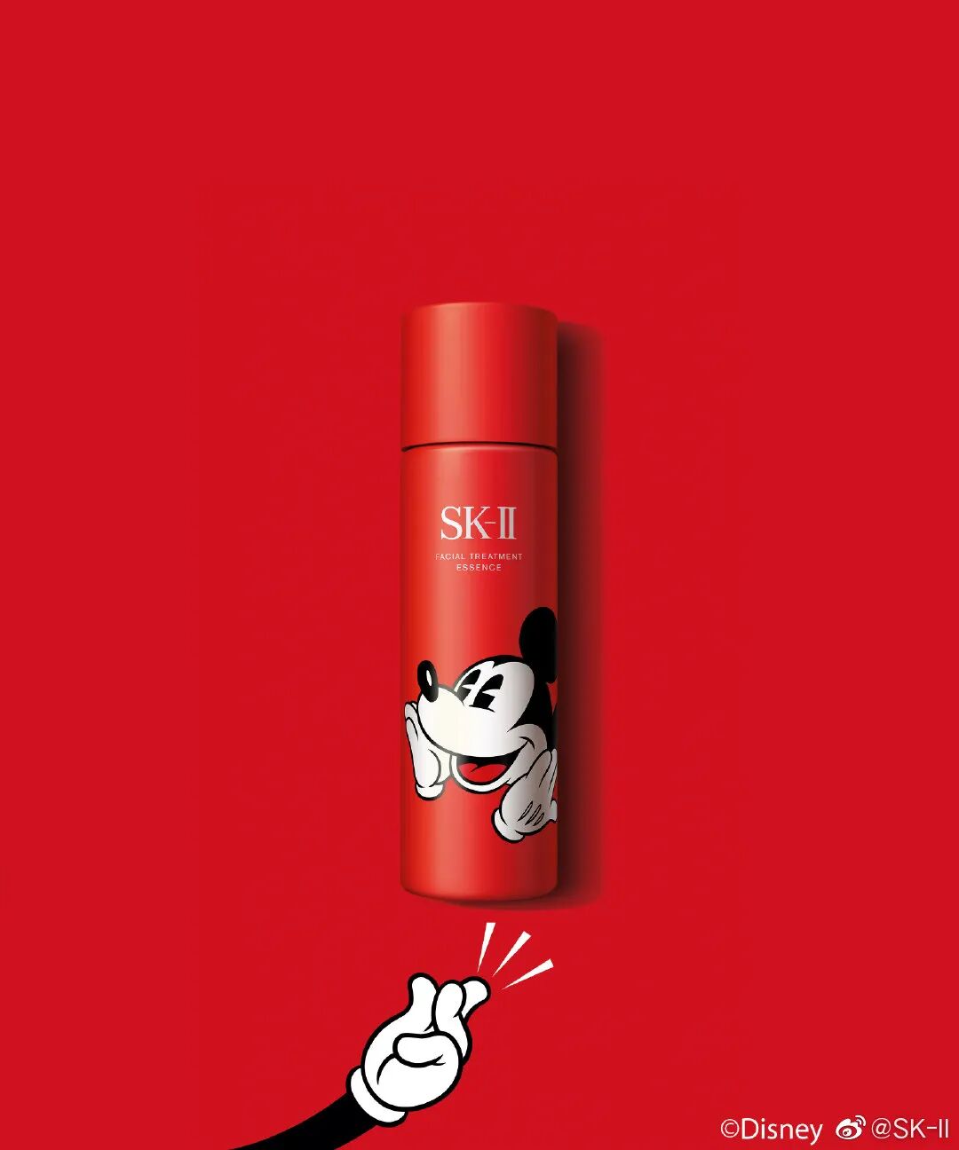 鼠年新春的时候,SK-II与迪士尼经典IP米老鼠跨界合作,推出米老鼠限量版神仙水,喜庆的红色包装,为用户新年带来好运。图片来源SK-II 微博