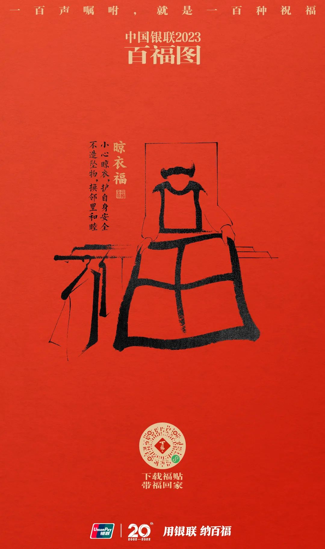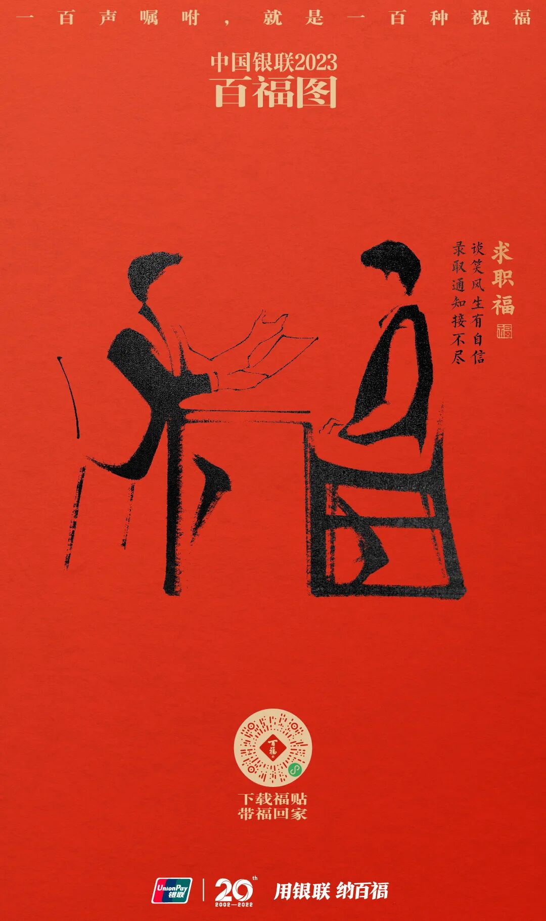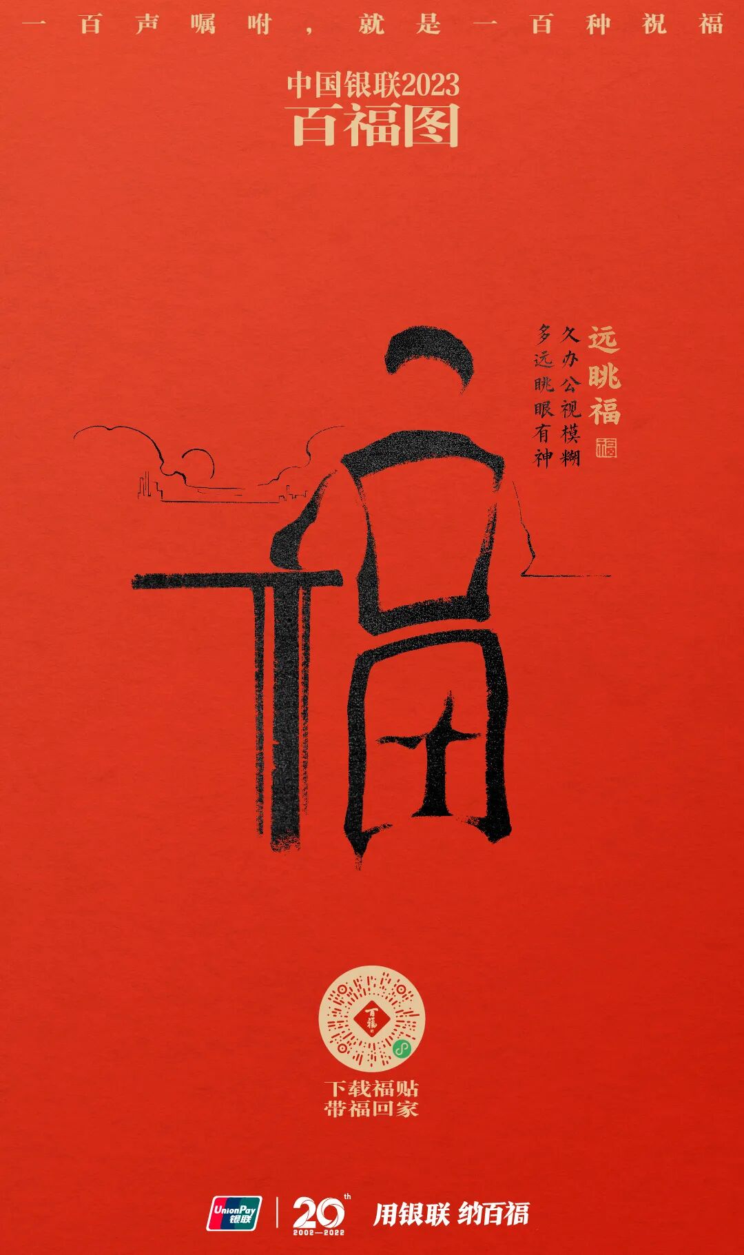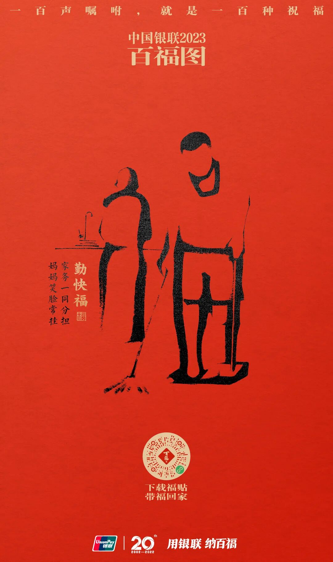之前,中国银联就为100种职业福,致敬各行各业的劳动者,组成一幅壮阔的百福图。