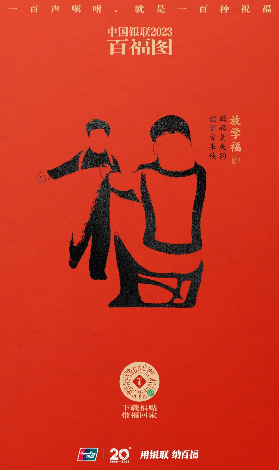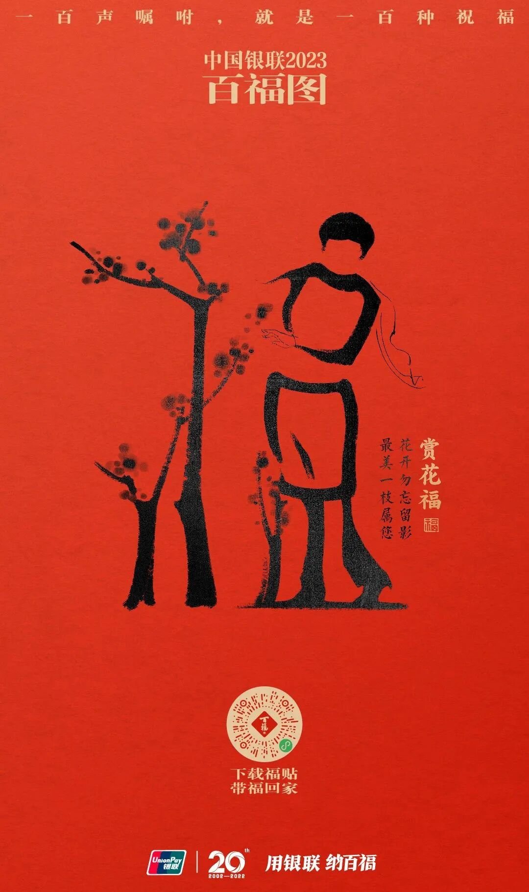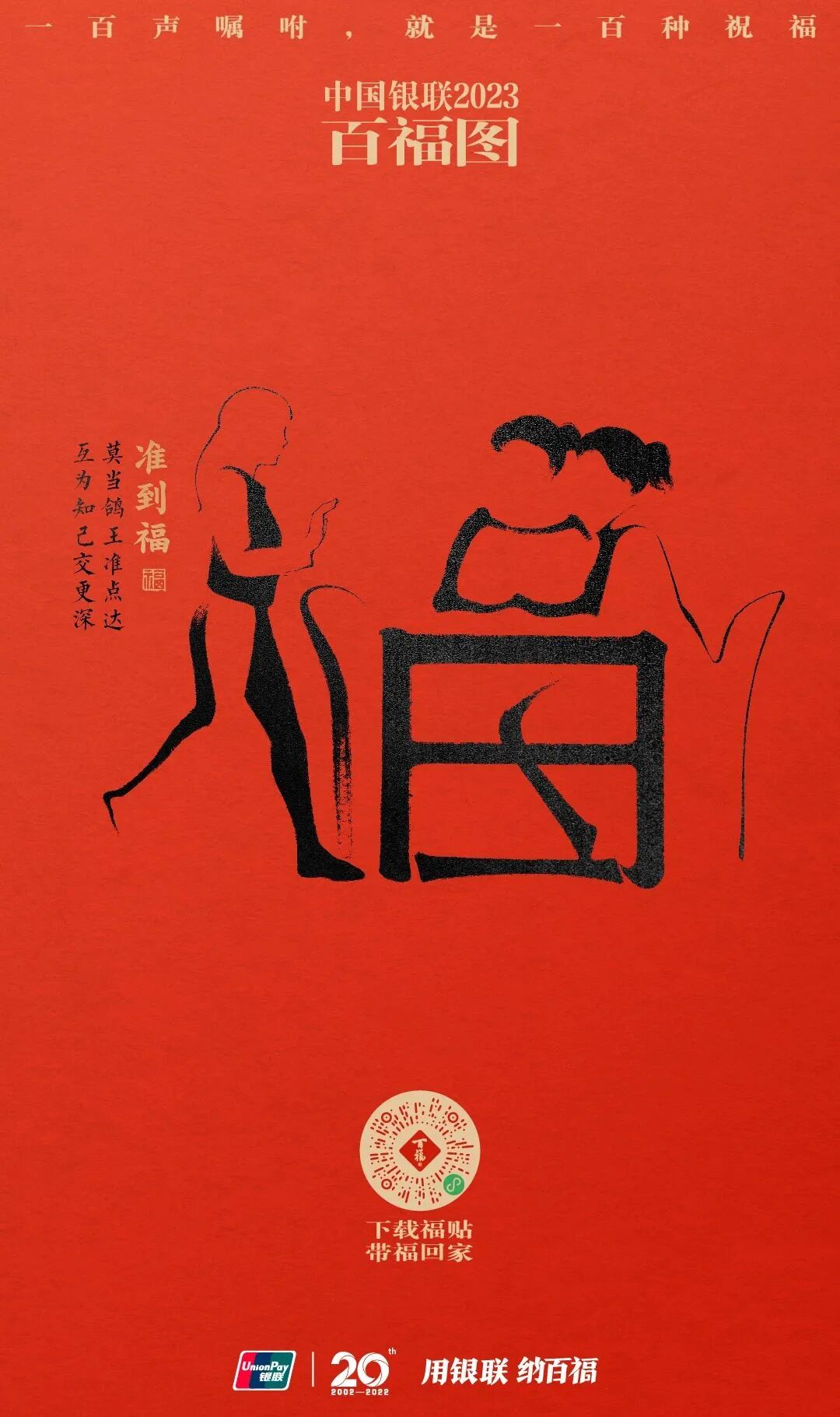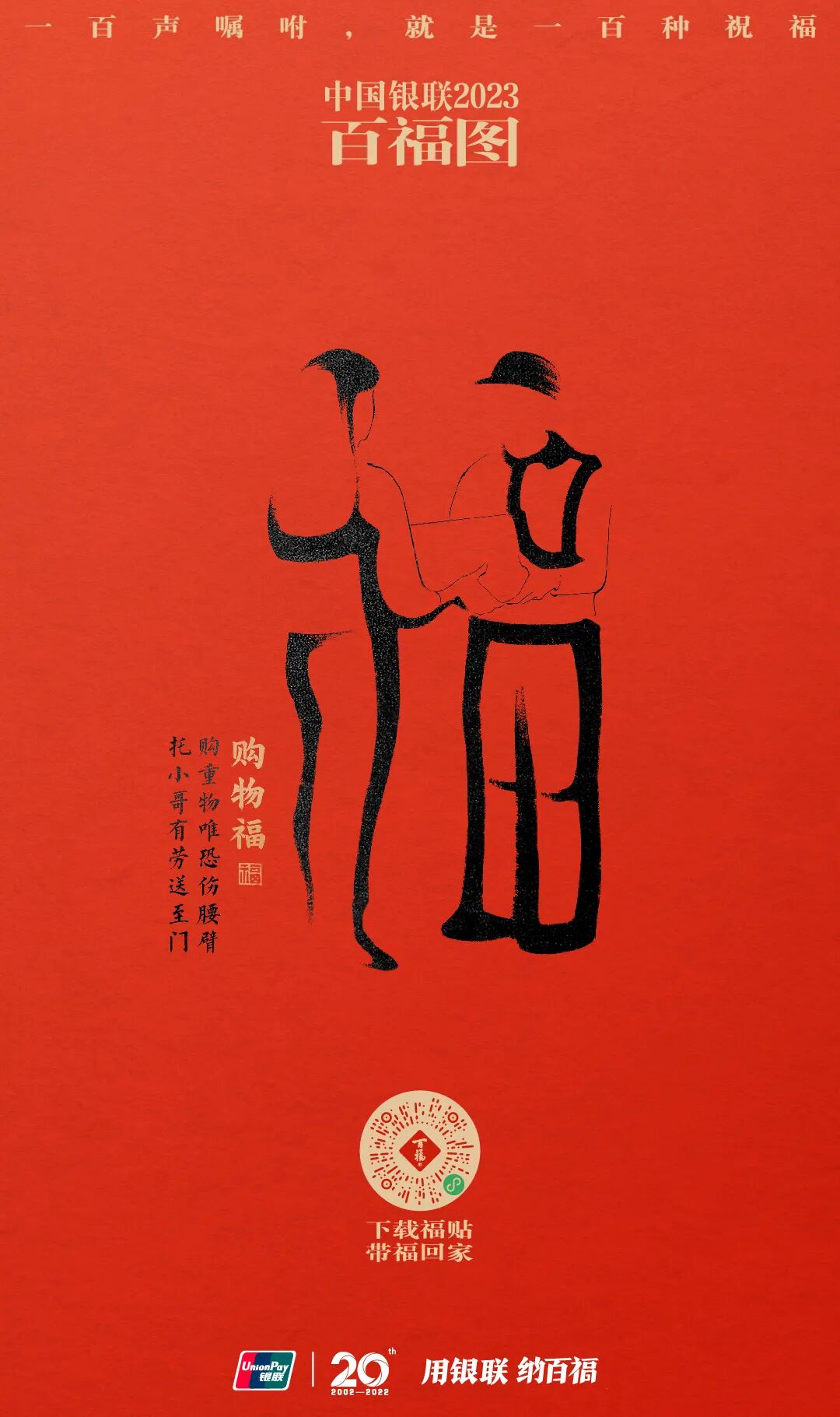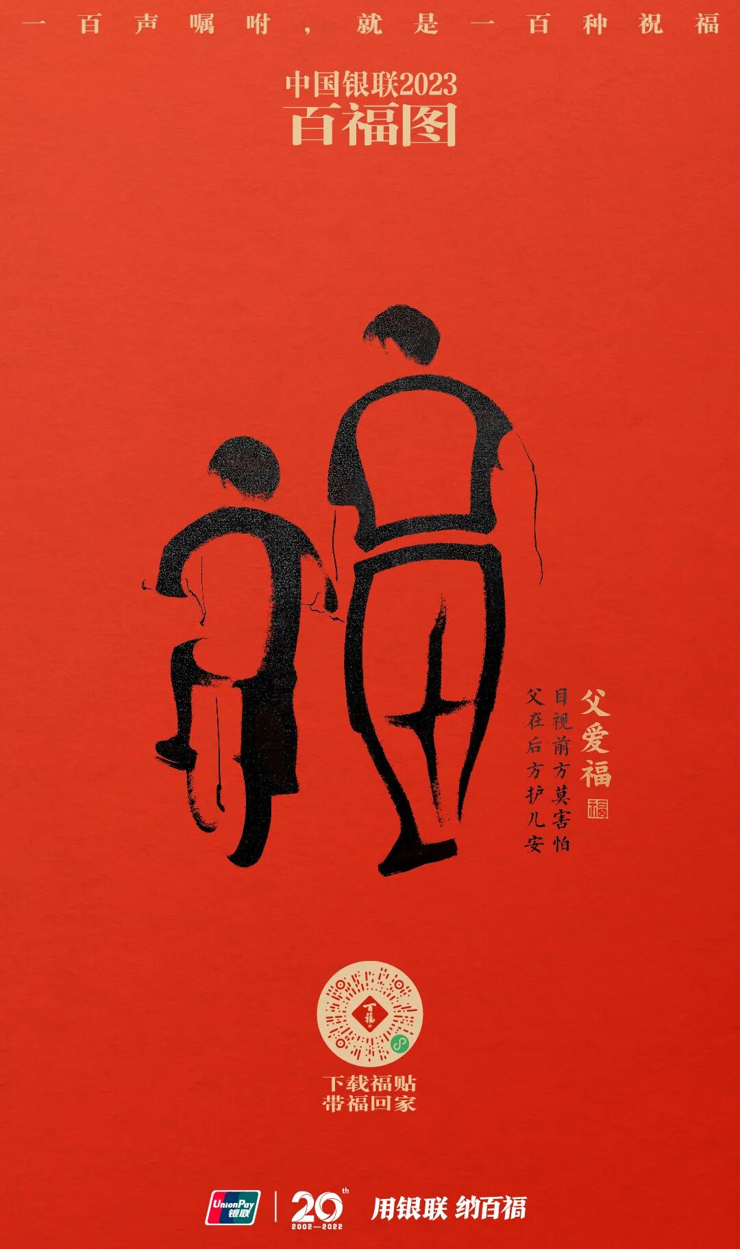 之前,中国银联就为100种职业福,致敬各行各业的劳动者,组成一幅壮阔的百福图。