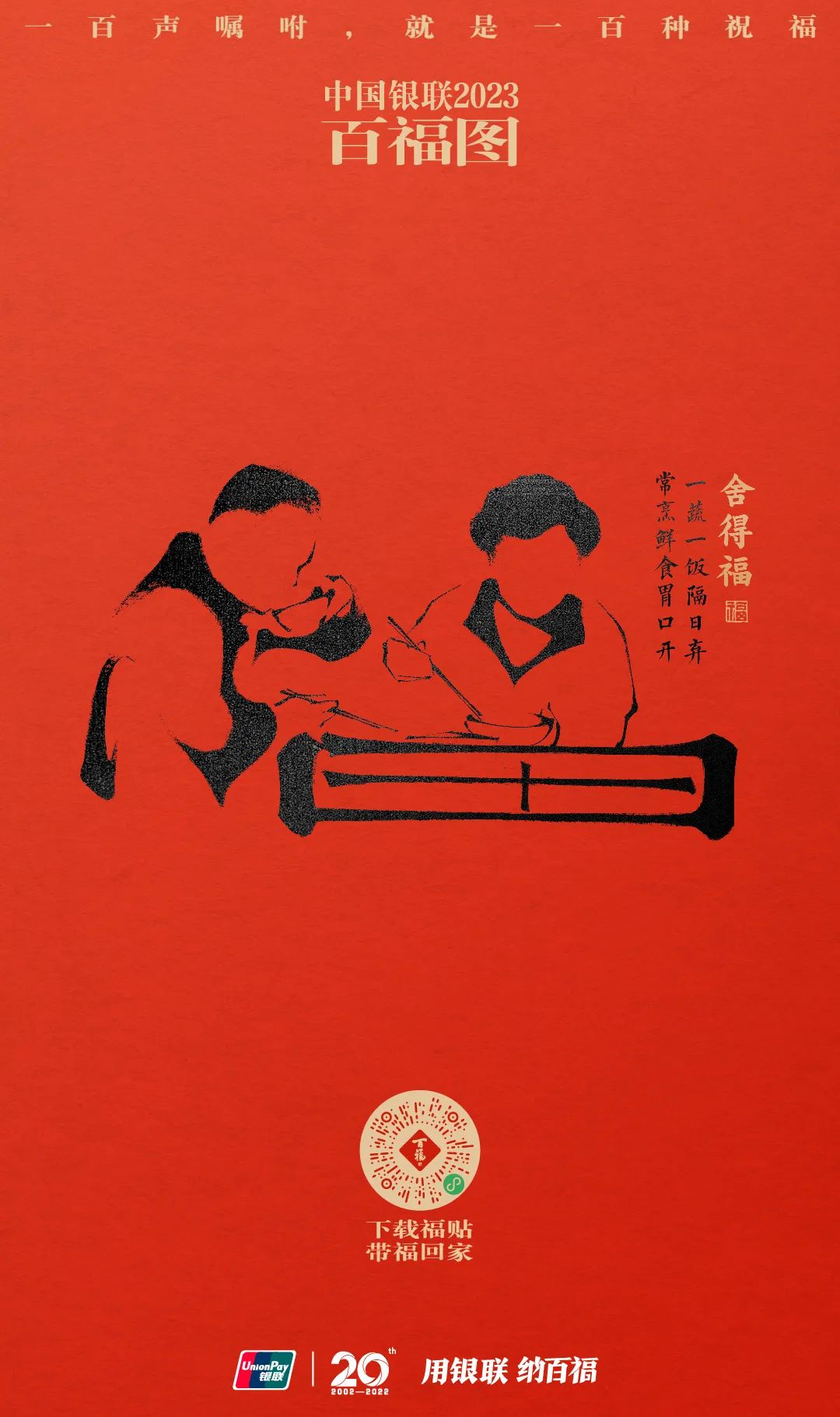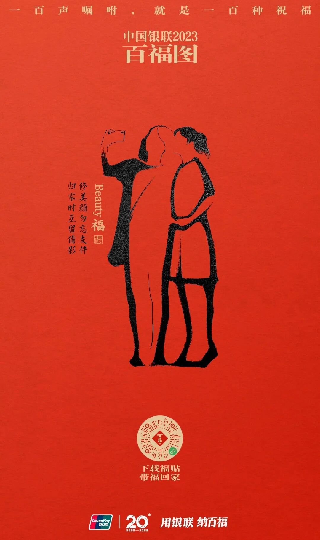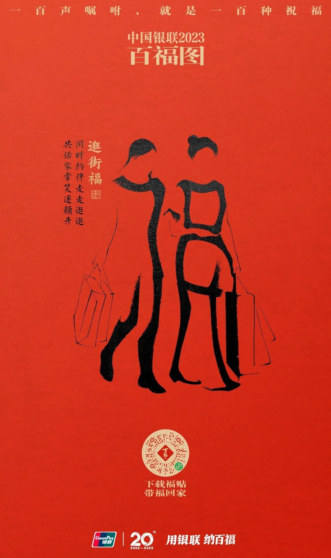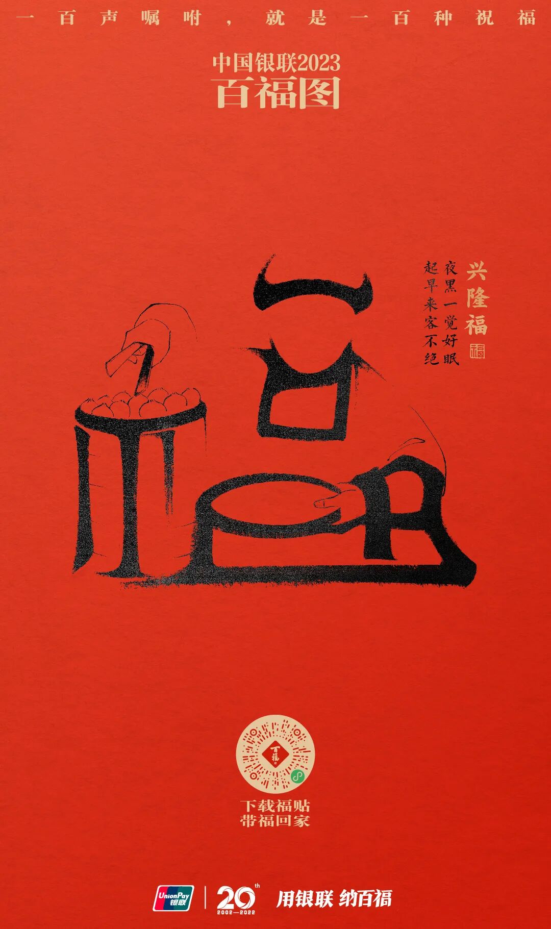 之前,中国银联就为100种职业福,致敬各行各业的劳动者,组成一幅壮阔的百福图。