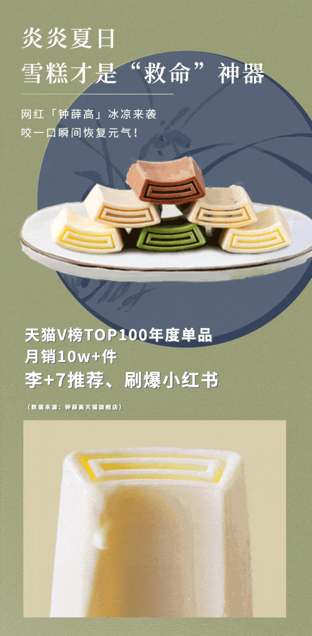 在品牌营销推广中,如此高的定价,钟薛高还能迅速走红,“产品差异化”是最大的功臣,而这也让品牌快速建立起竞争壁垒。在「颜值经济」时代,好看的东西总是令人赏心悦目,心情愉悦。高颜值的产品外观是成为网红的必备属性,钟薛高深谙此道。每一款雪糕的设计从名字、颜色、图片,到内容,都令人眼前一亮,垂涎不止。与传统雪糕造型不同,钟薛高以中国建筑的瓦片作为设计原型,专门设计了出了「瓦片雪糕」,外观不仅富有中国味,颜值也颇高,顶部则是精心雕刻的回字纹,外包装采用的“祥云”、“生肖”等元素则是中国古典意向的生动体现。