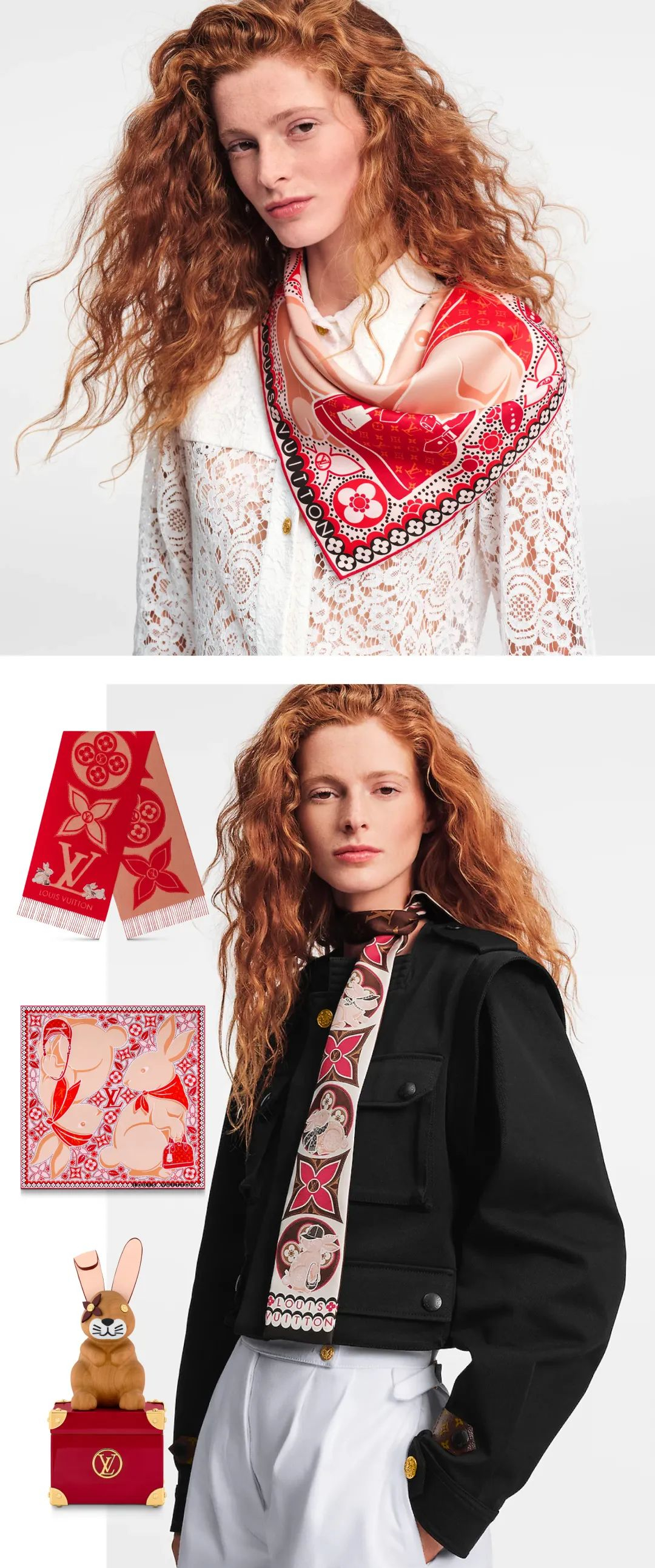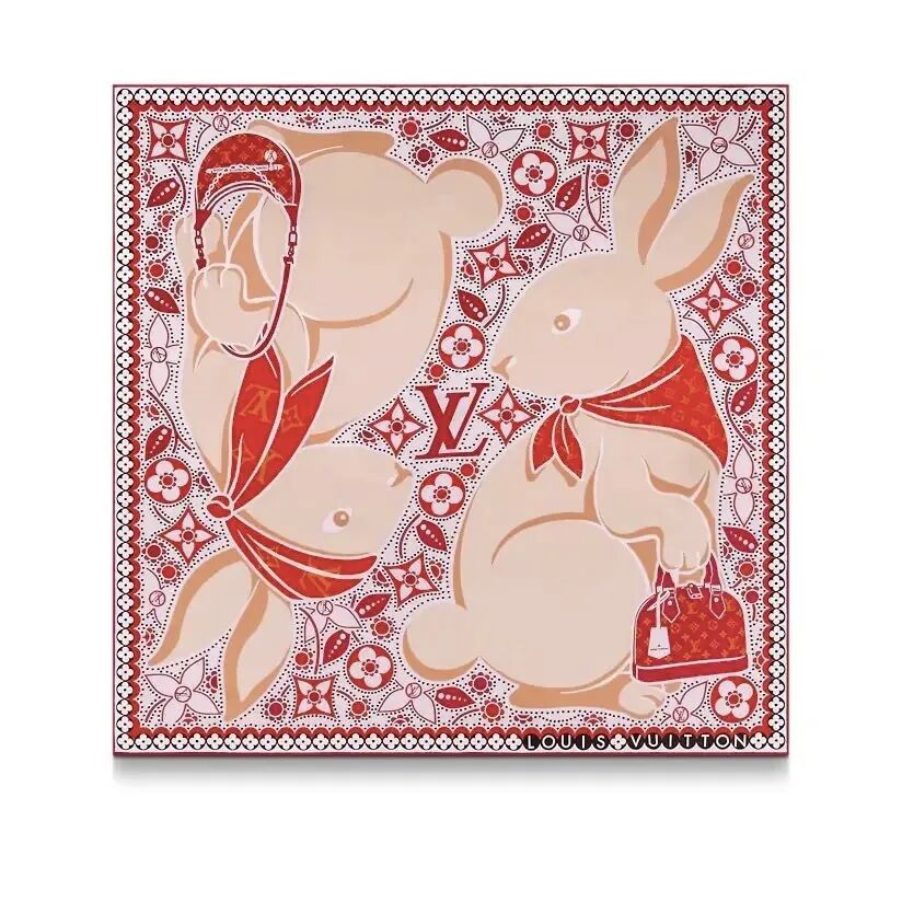 LV兔年限定整体还是以中国红和金色为主配色,在图案方面,依旧是LV的原创小动物造型, 兔子图案和LV经典老花相融合。