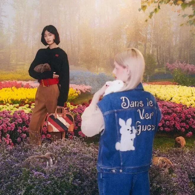 GUCCI还是一如既往的复古梦幻风,这次新年系列的拍摄是由伦敦视觉艺术家 Max Siedentopf 操刀,除了可以感受到生机盎然,还能看到兔子巧妙融入了各单品设计中。