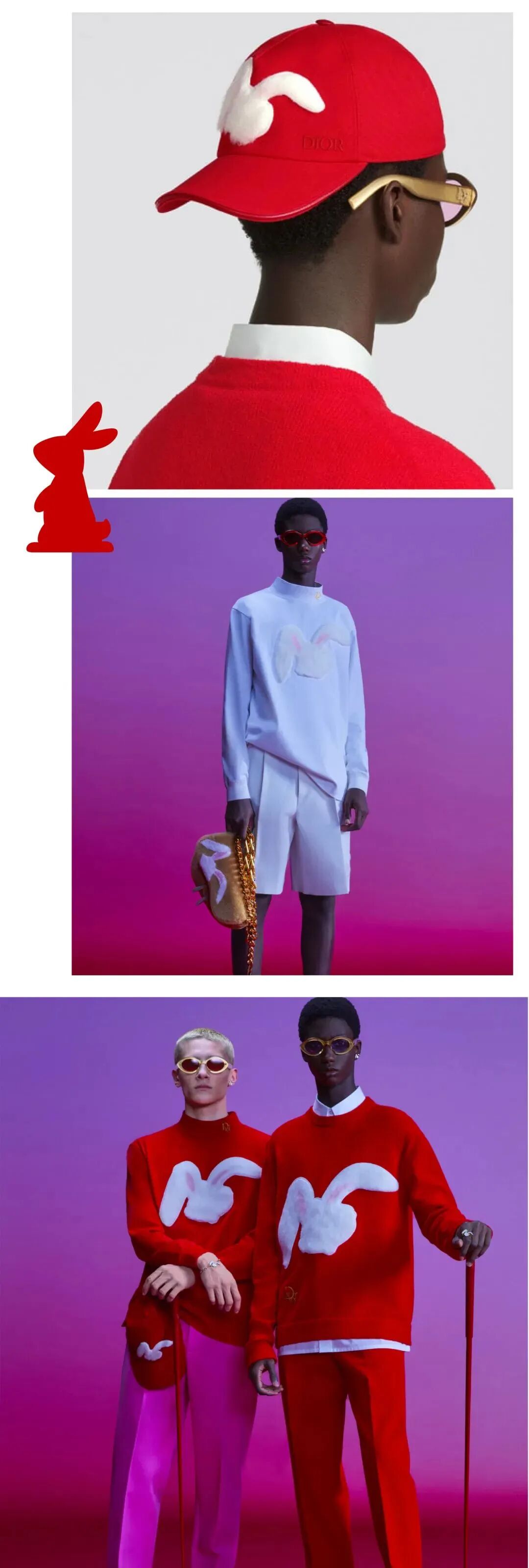 迪奥的兔年设计也是兔子图案和大红色的配色,很喜庆!