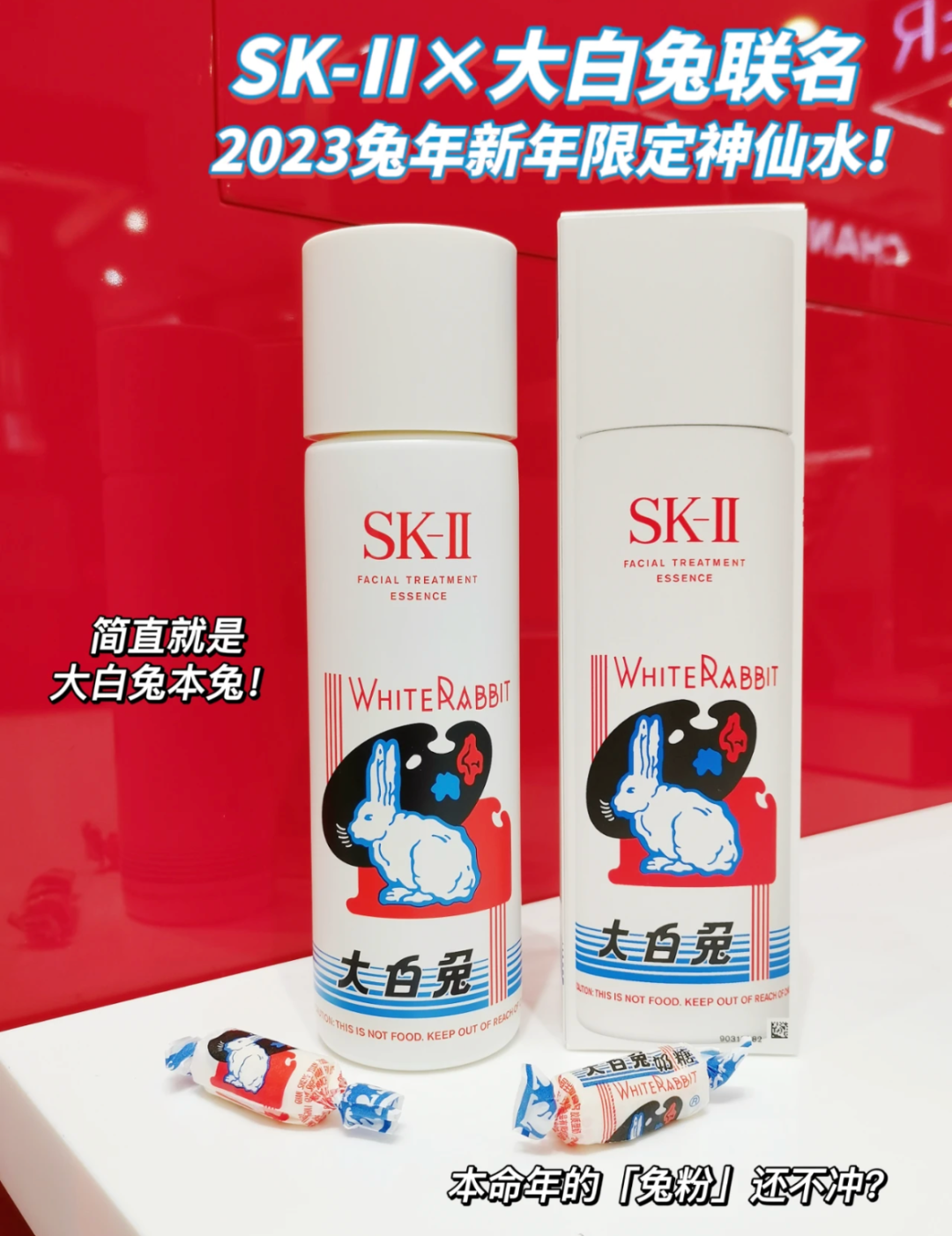 神仙水也太聪明了吧,直接跟大白兔联名,省去了一大笔兔子logo设计费用,而且SK-II,还能玩谐音“SK-兔”。
